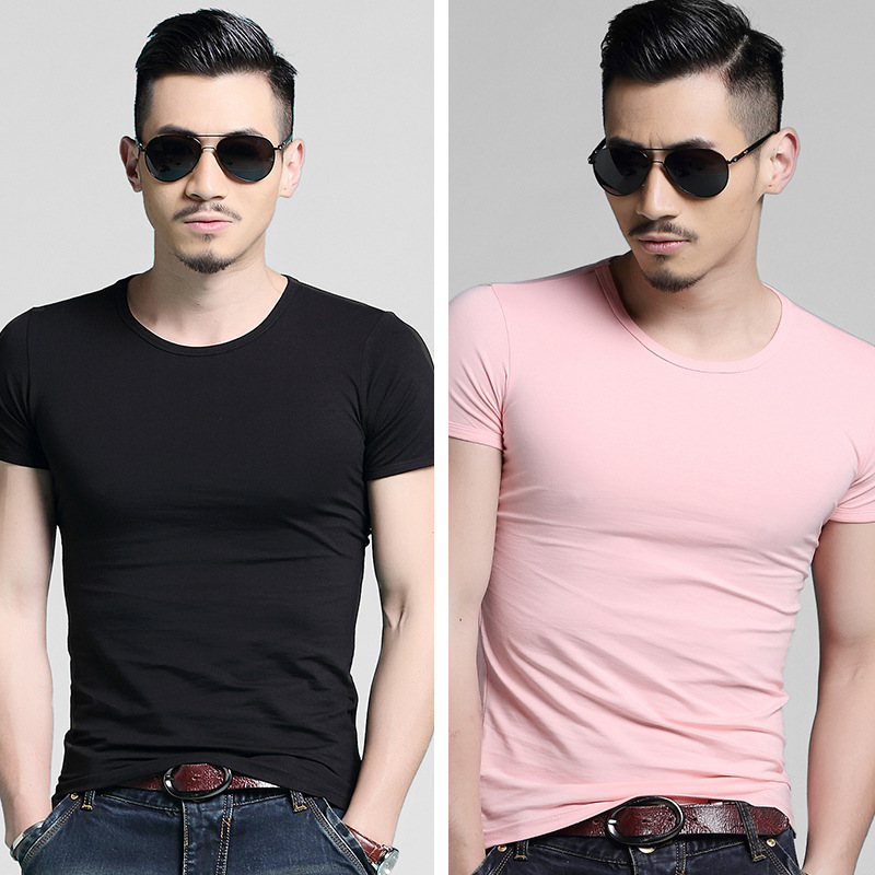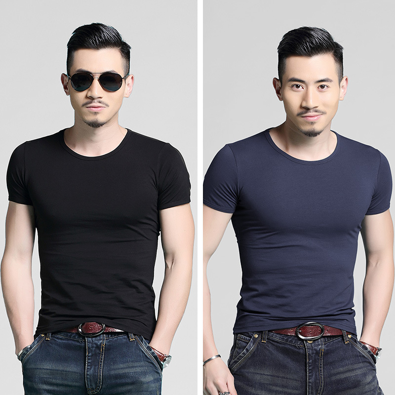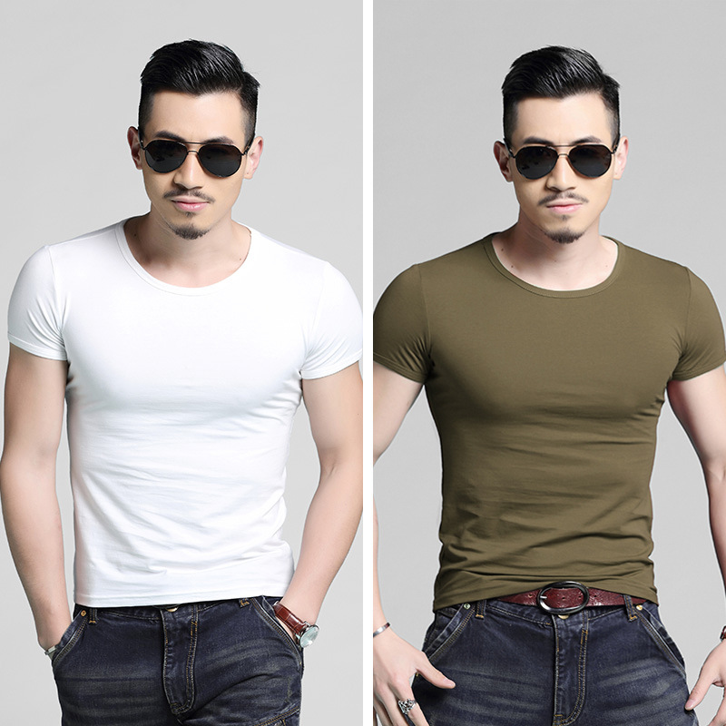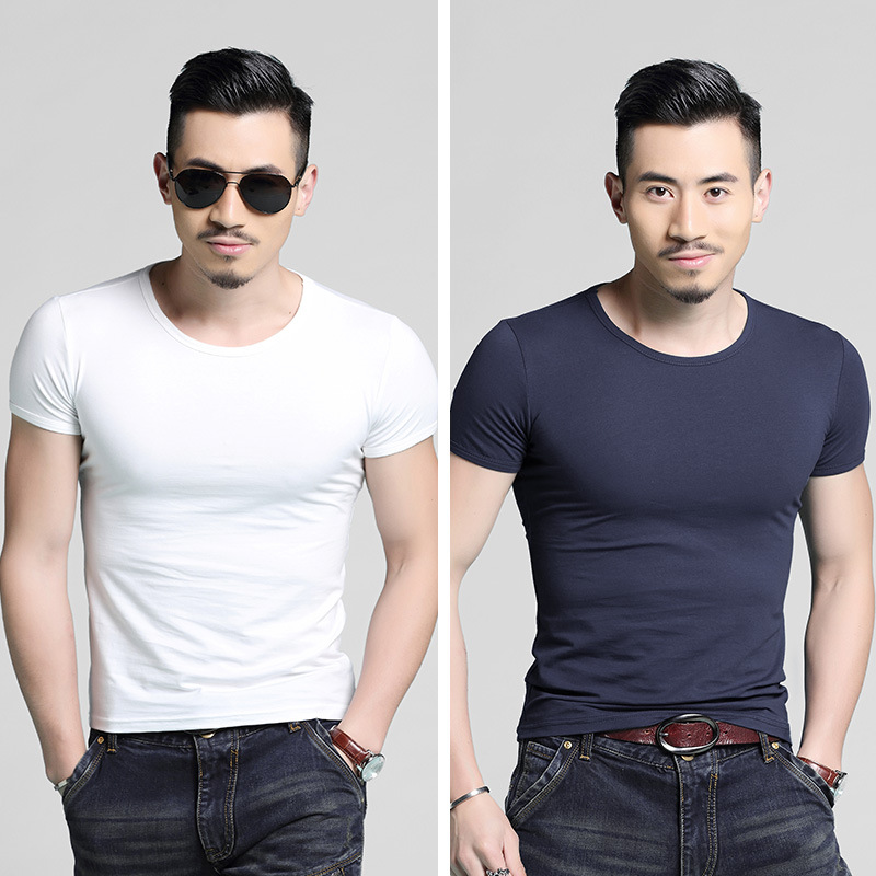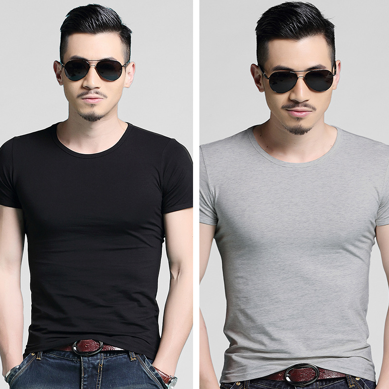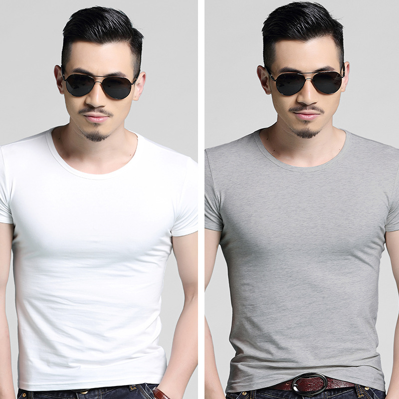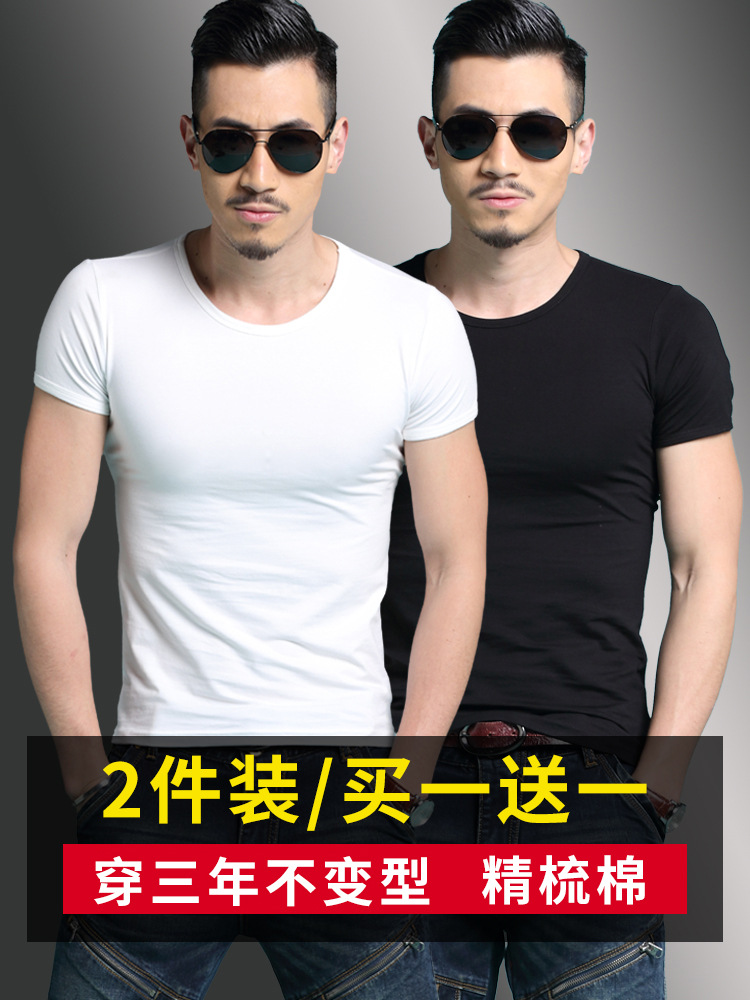 2 개 남성용 반팔 티셔츠 슬림핏 티셔츠 여름 반팔 흑백 순백색 면 타이트 의류 베이스 셔츠 트렌디 브랜드스토어 가기