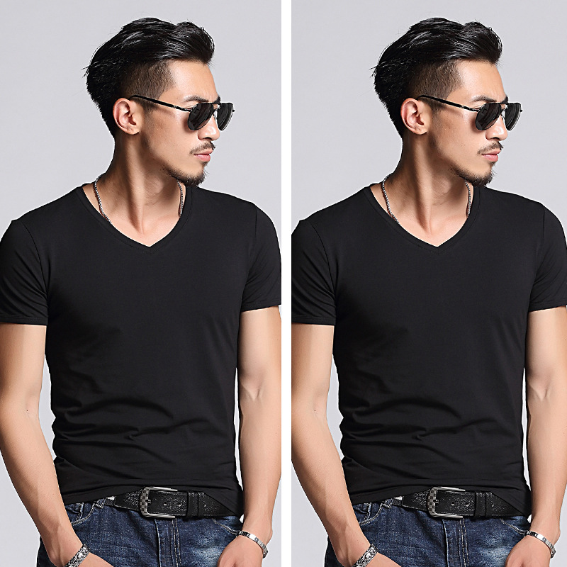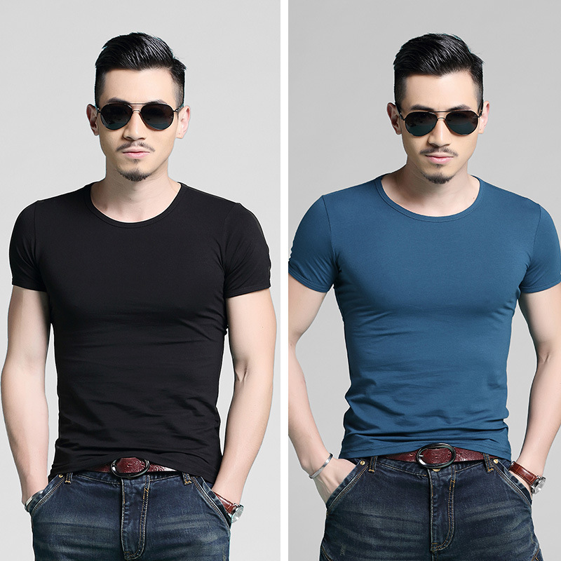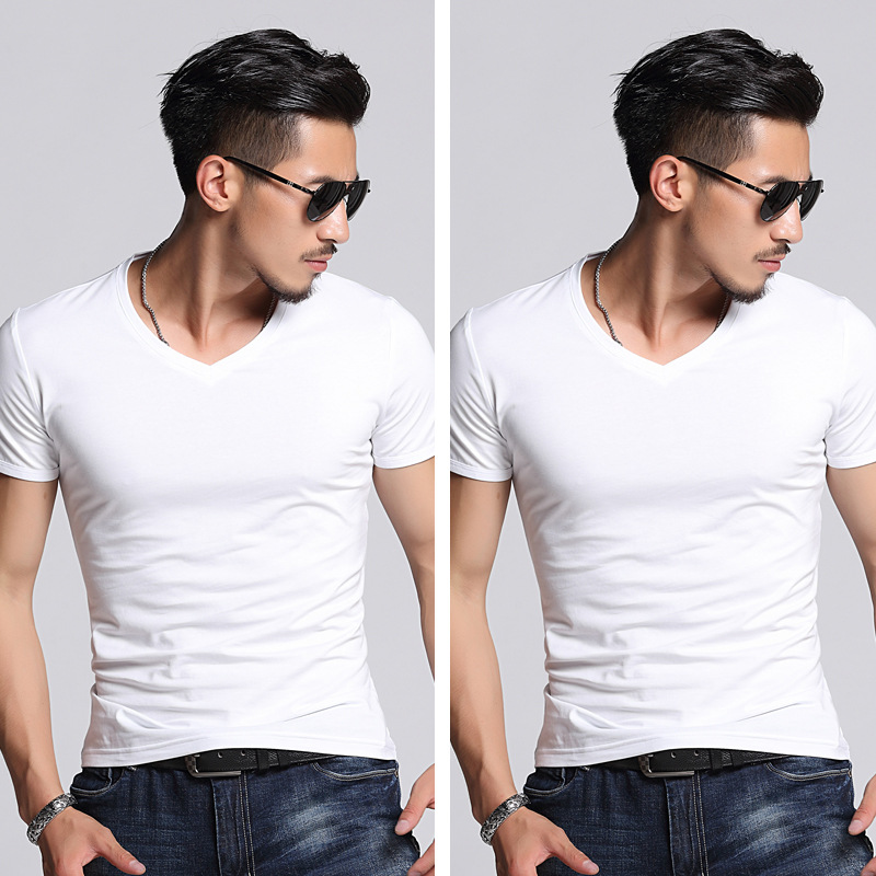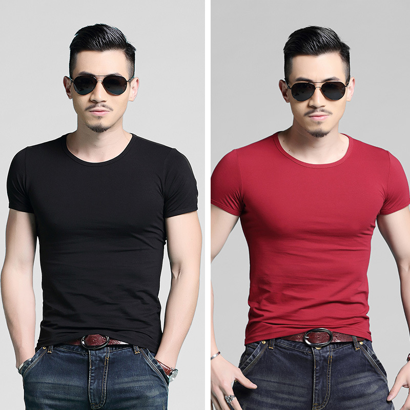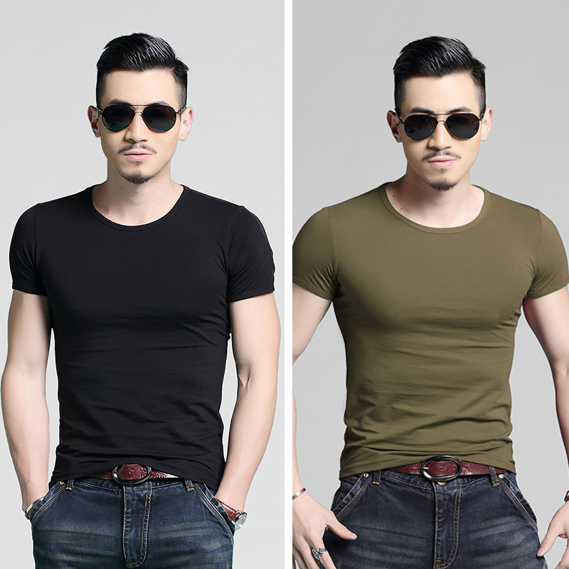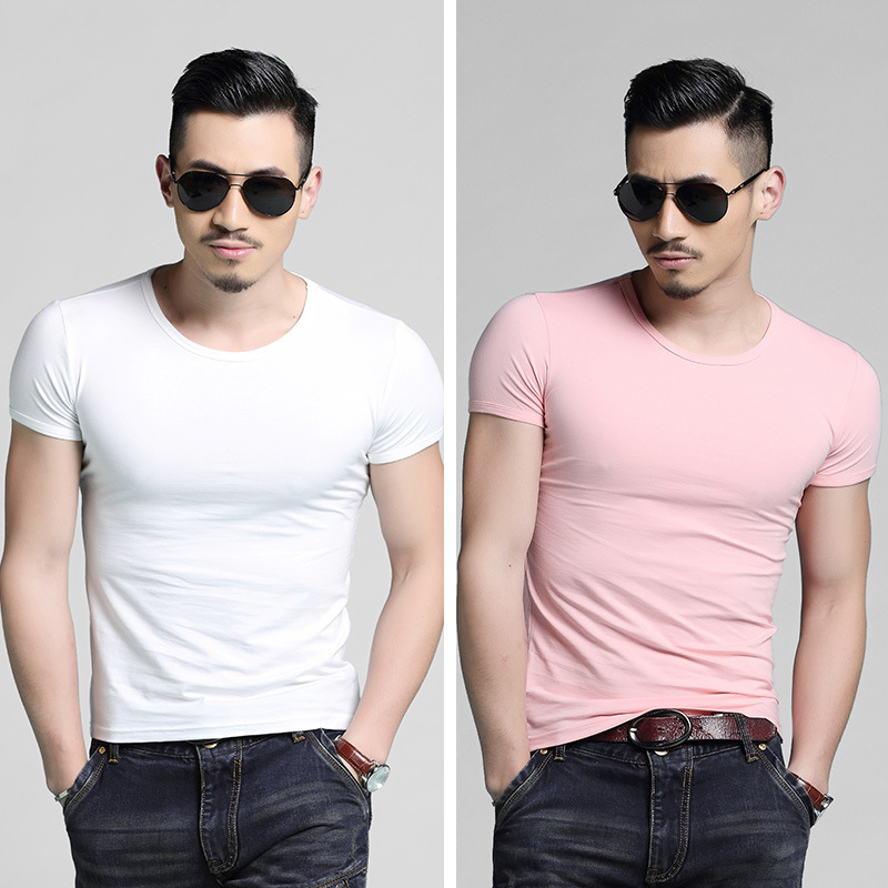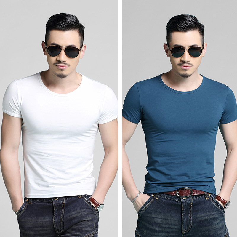 2 개 남성용 반팔 티셔츠 슬림핏 티셔츠 여름 반팔 흑백 순백색 면 타이트 의류 베이스 셔츠 트렌디 브랜드스토어 가기