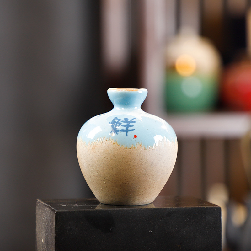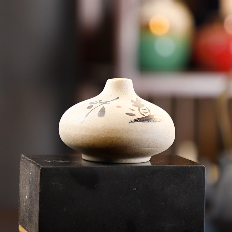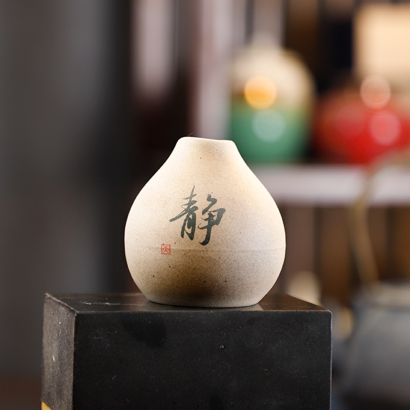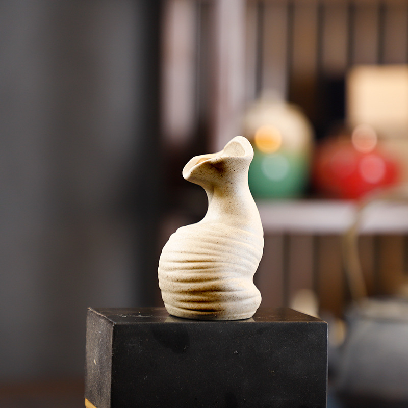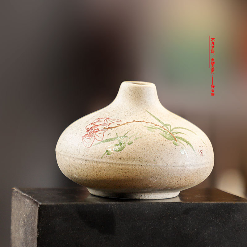 Haoshizhai 젠 스타일의 거친 도자기 작은 꽃병, 세라믹 장식, 거실 장식, 가정용 복고풍 수경 꽃꽂이, 말린 꽃꽂이