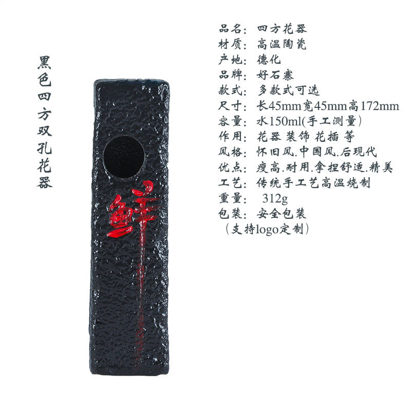 • 검은 도자기 내부 원형 및 외부 사각형 꽃 그릇