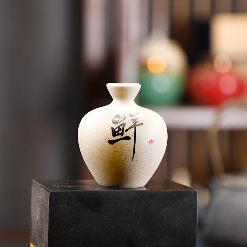 Haoshizhai 젠 스타일의 거친 도자기 작은 꽃병, 세라믹 장식, 거실 장식, 가정용 복고풍 수경 꽃꽂이, 말린 꽃꽂이스토어 가기