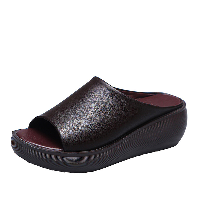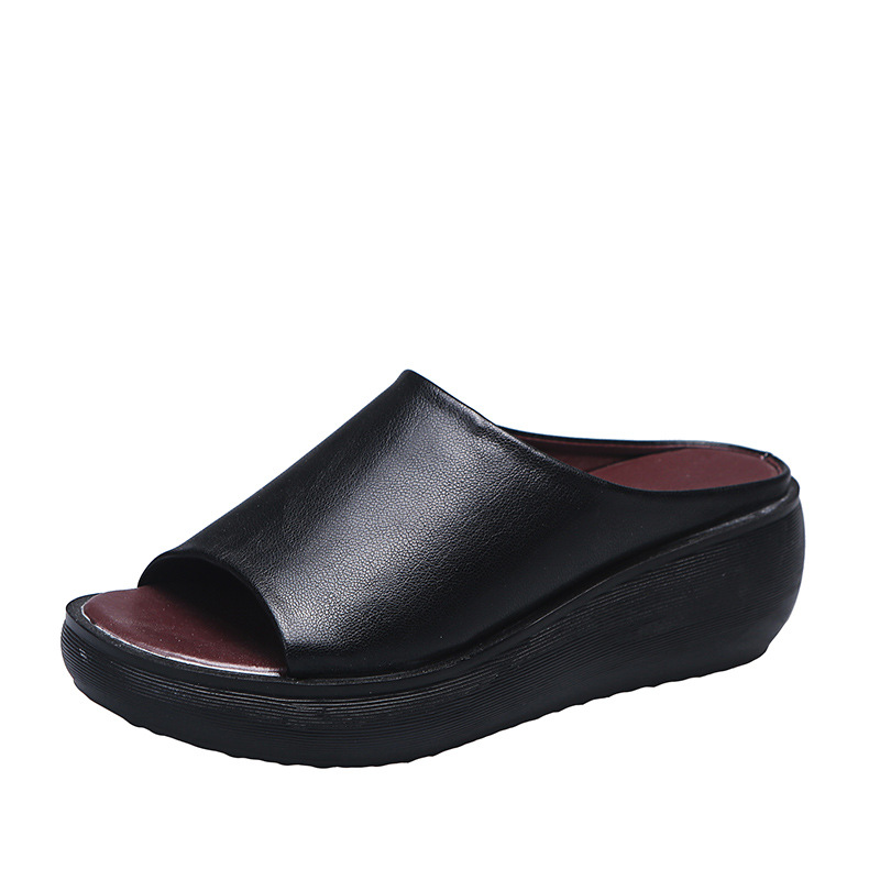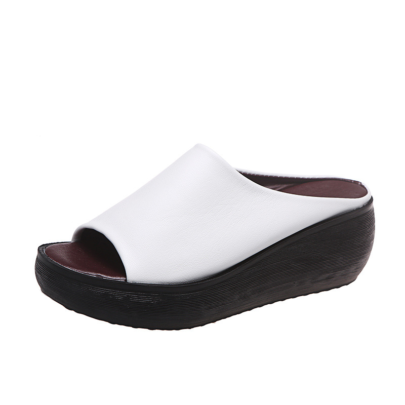 여성용 단색 두꺼운 밑창 슬리퍼, 2024년 여름 신상 유럽 및 미국 스타일 캐주얼 심플 원라인 오픈토 플랫폼 슬리퍼스토어 가기