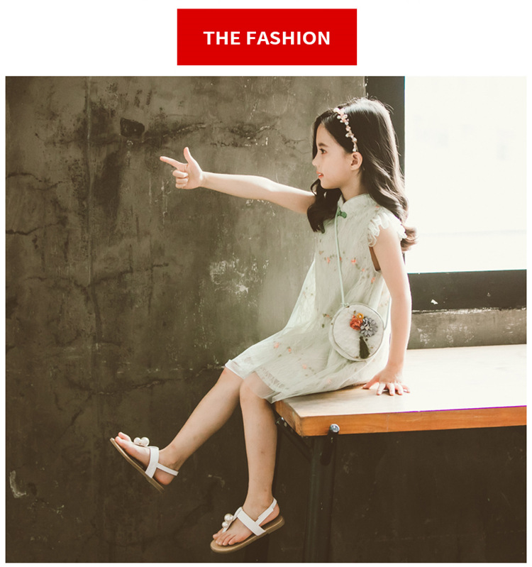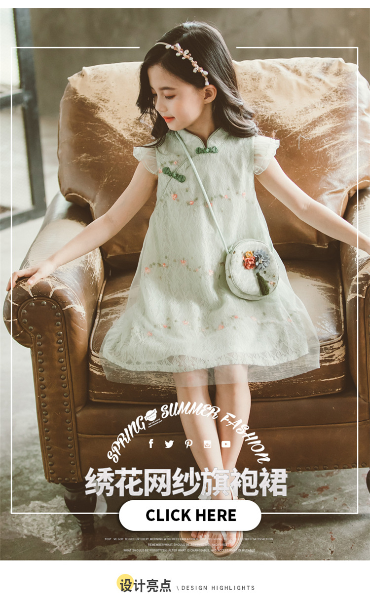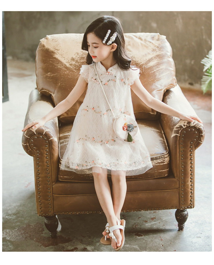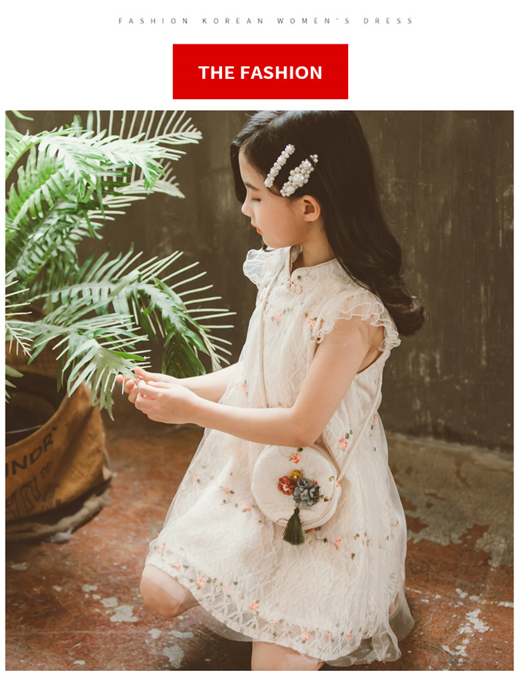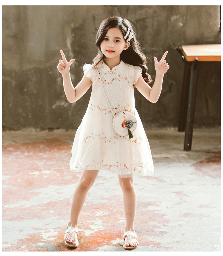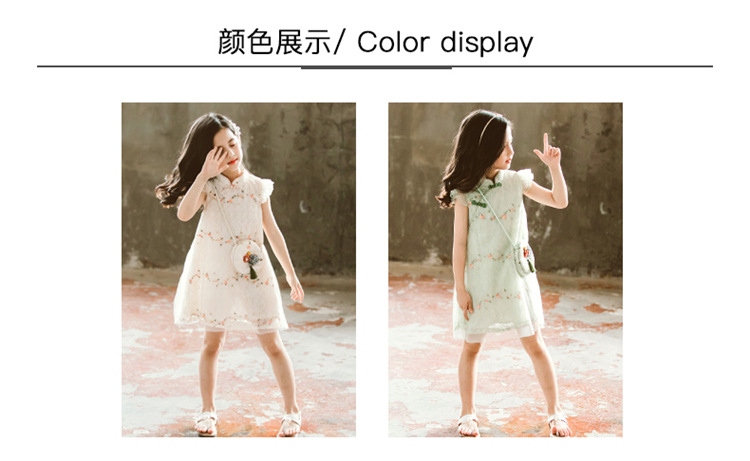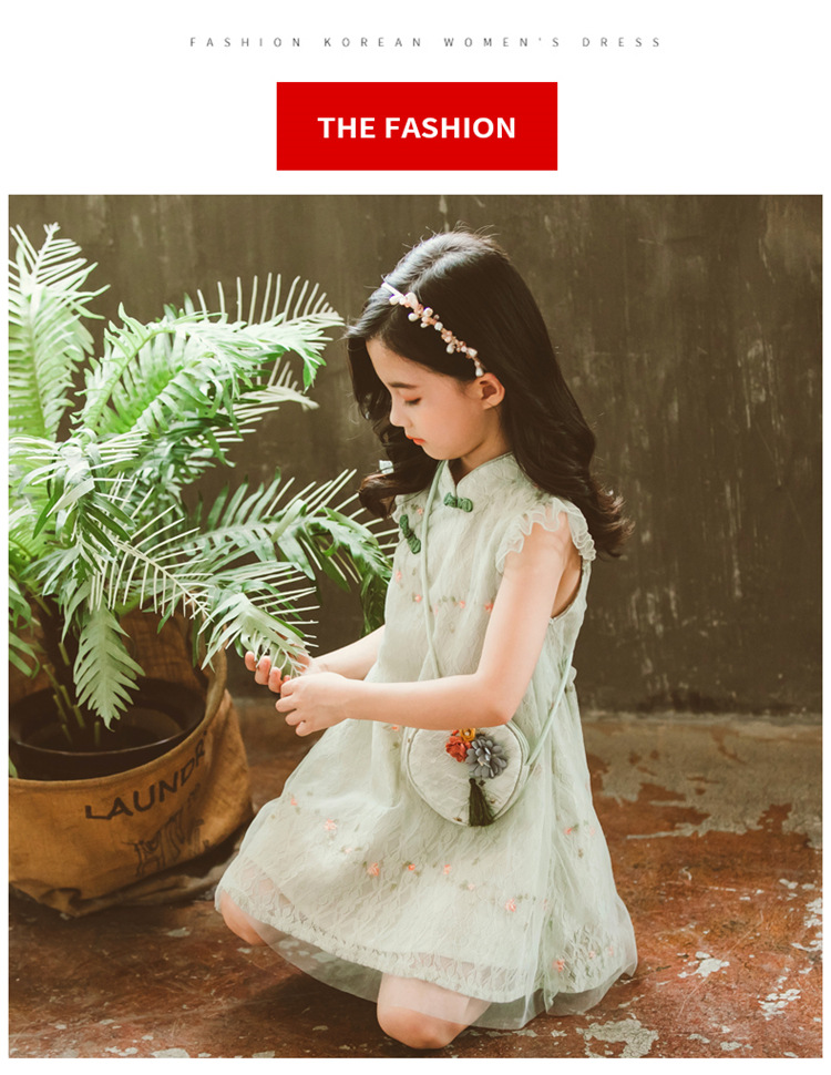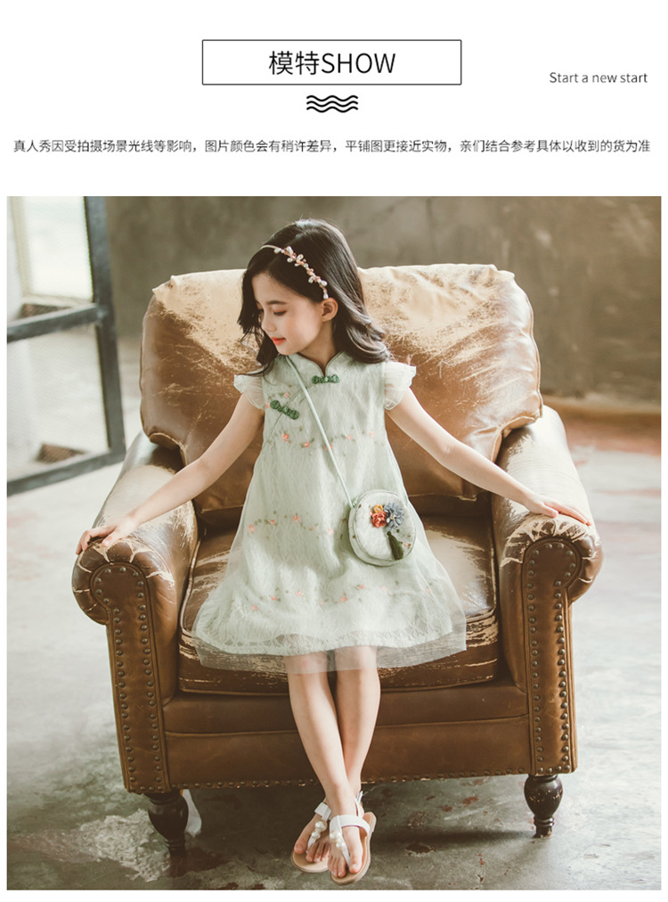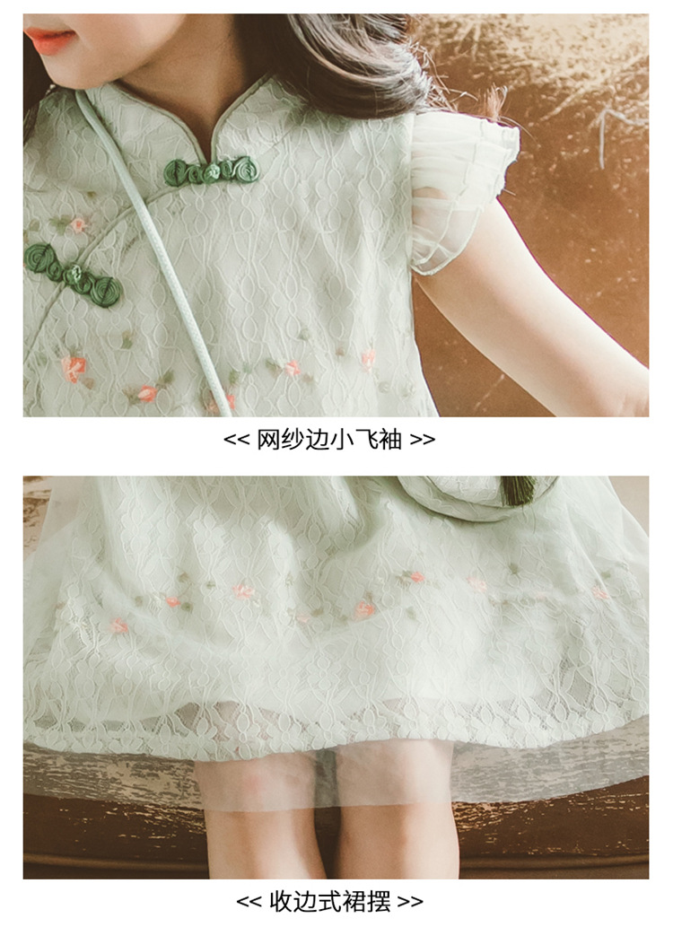 원피스 2023 새로운 국가 스타일 어린이 치마 소녀 여름 치파오 치마 어린이 레이스 머리카락의 세대스토어 가기