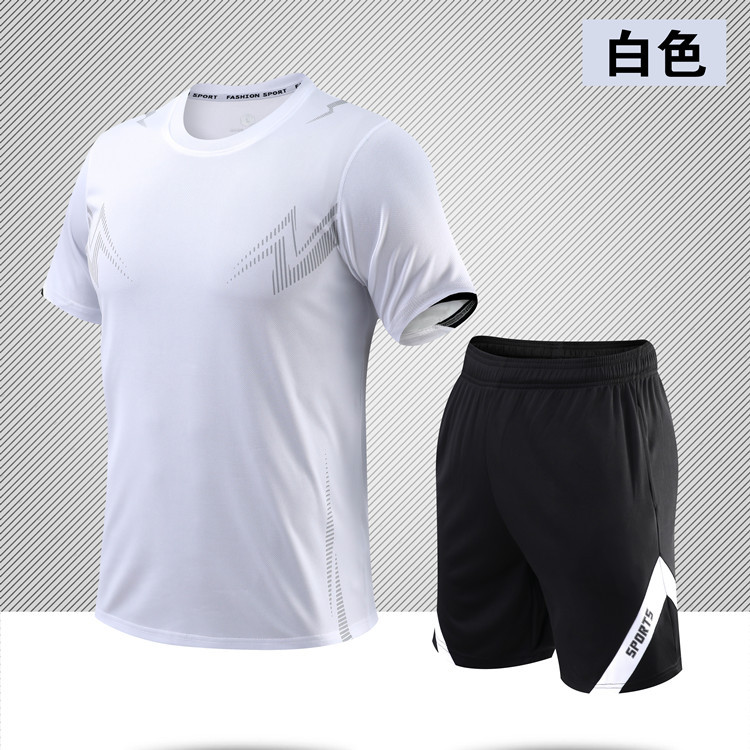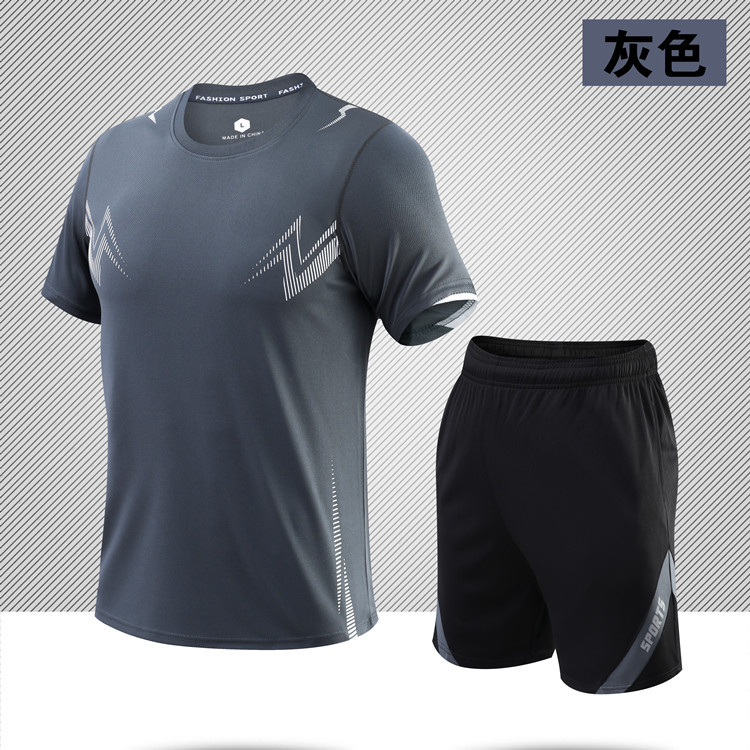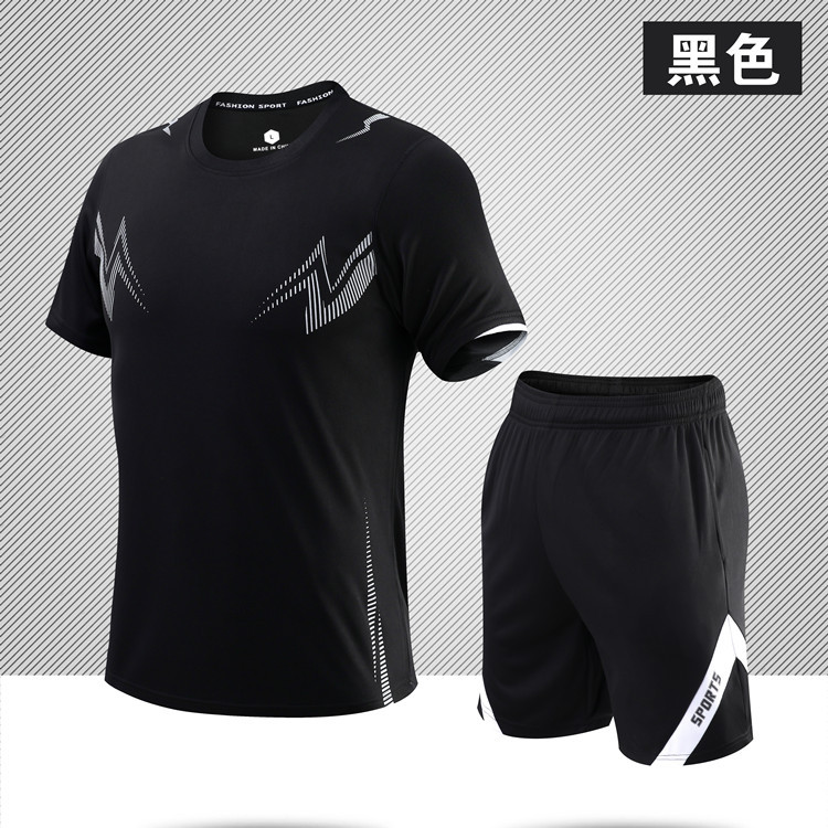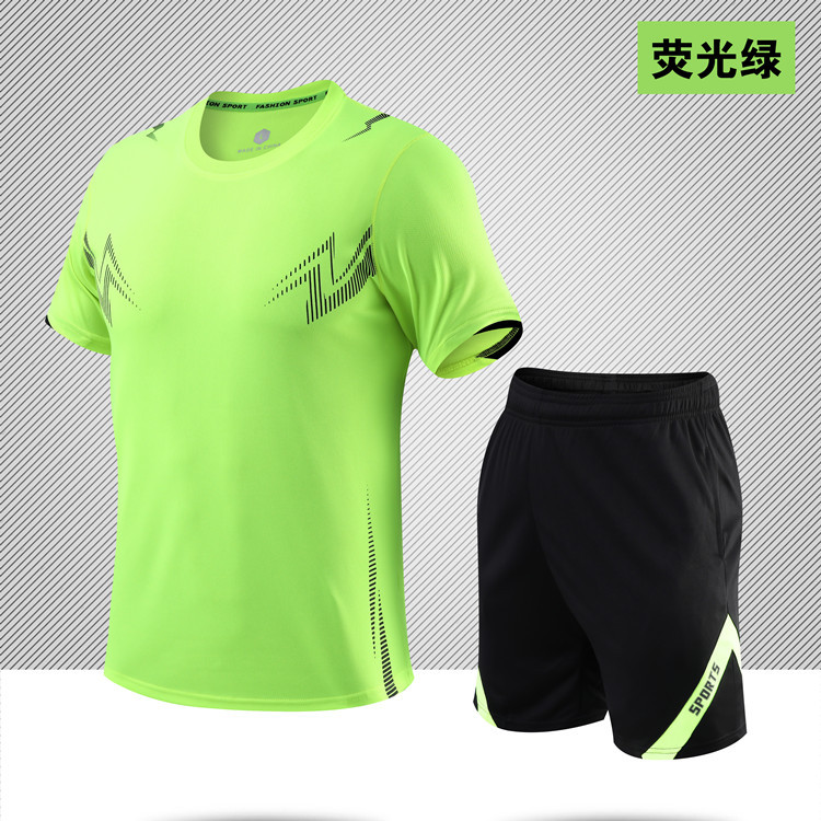 여름 새로운 스포츠 피트니스 런닝 반팔 투피스 의류 남성 스포츠 속건 의류 9003