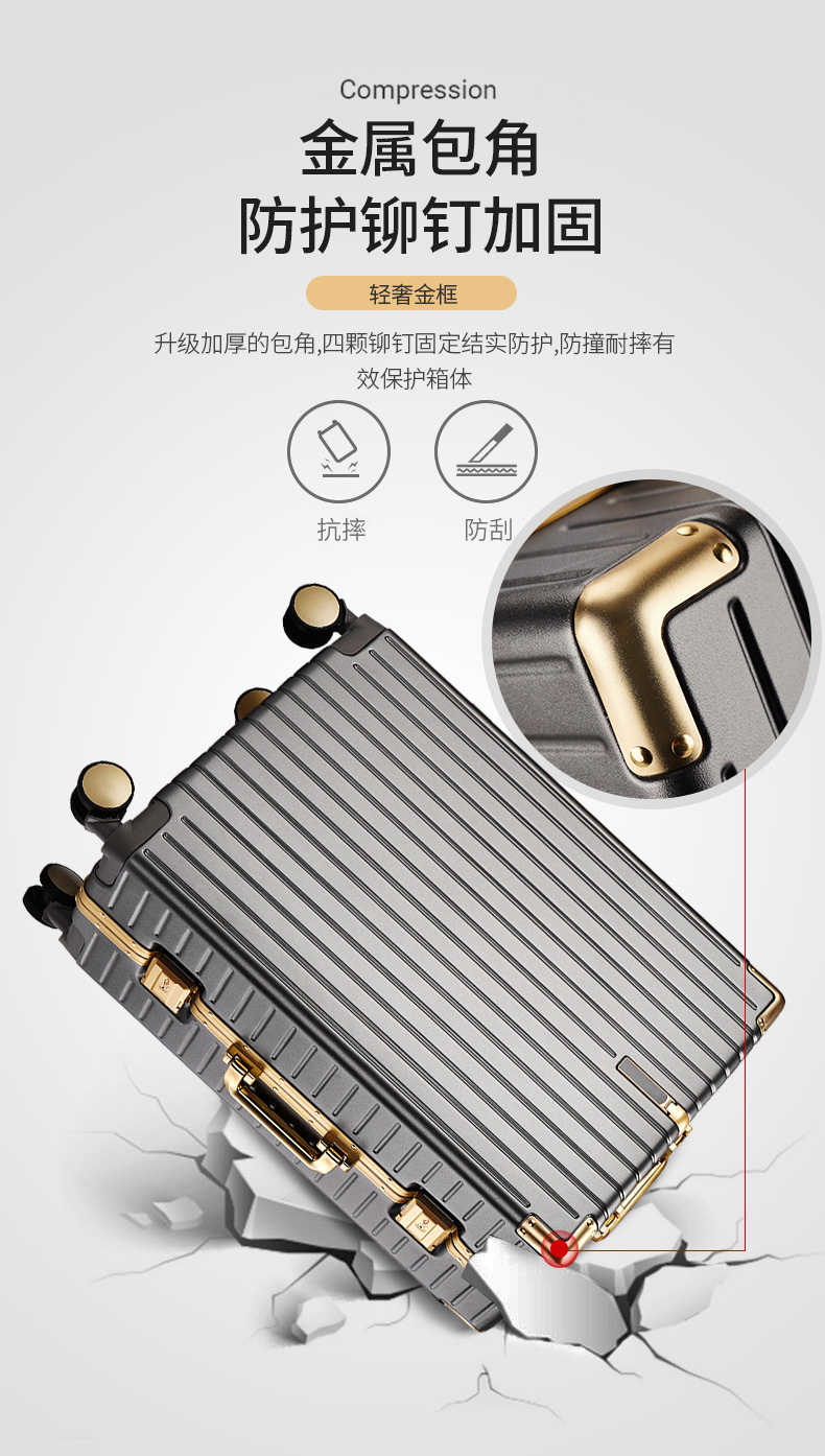 수화물 알루미늄 프레임 트롤리 케이스 하이 컬러 가치 남녀 학생 유니버설 휠 20 인치 탑승 코드 대용량 가죽 케이스