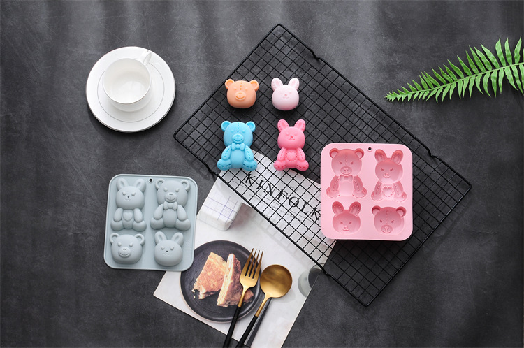 재고 만화 4 토끼 곰 실리콘 케이크 금형 수제 비누 금형 푸딩 무스 베이킹 젤 떨어지는 곰팡이스토어 가기