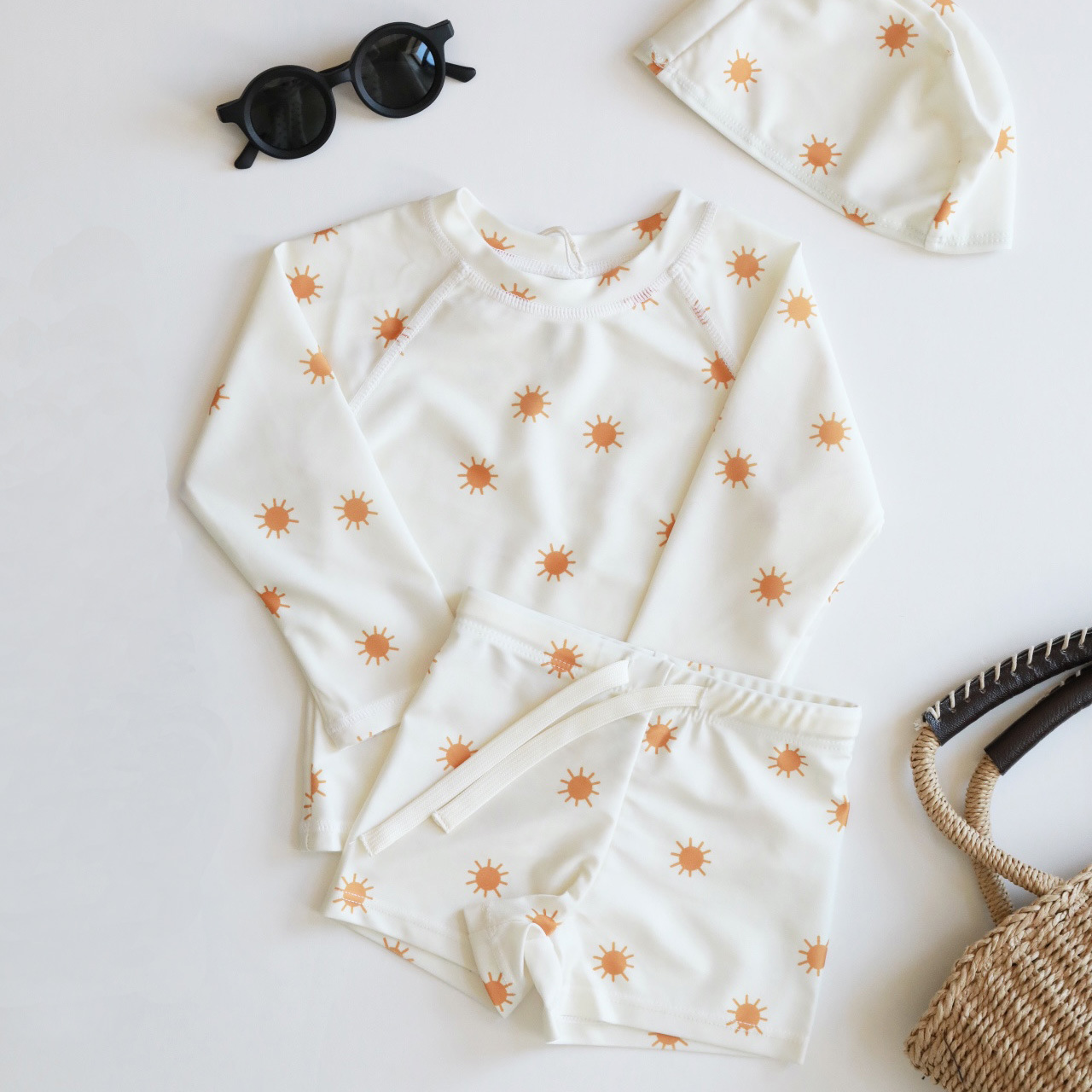 어린이 긴 소매 분할 수영복 25 년 아기 인스타그램 스타일 휴가 태양 보호 수영복 소년 아기 플랫 수영복스토어 가기