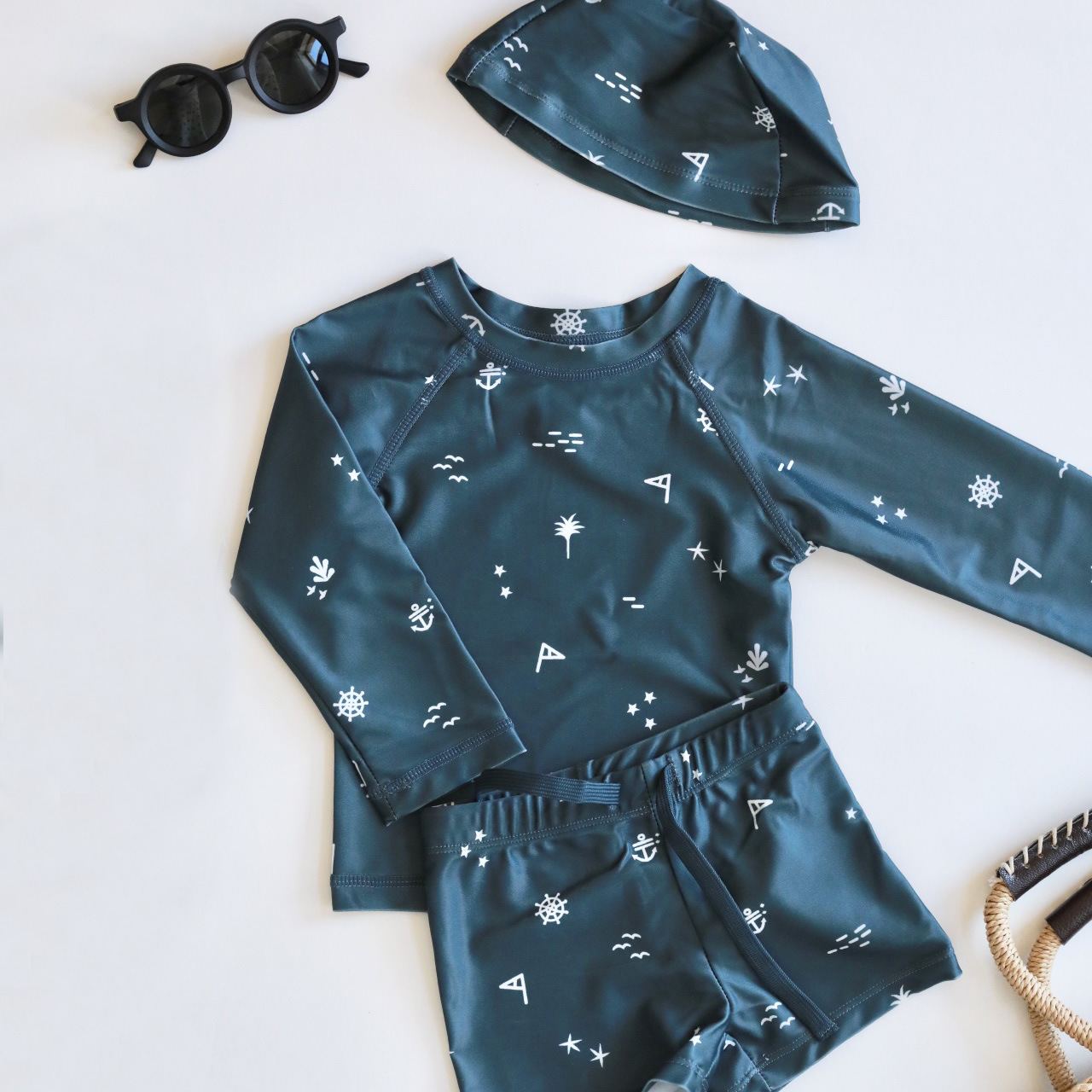 어린이 긴 소매 분할 수영복 25 년 아기 인스타그램 스타일 휴가 태양 보호 수영복 소년 아기 플랫 수영복