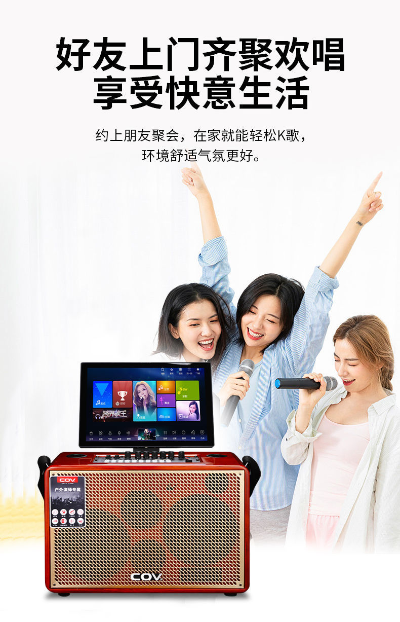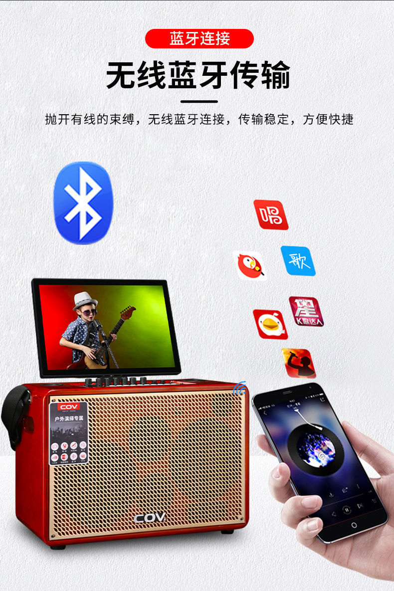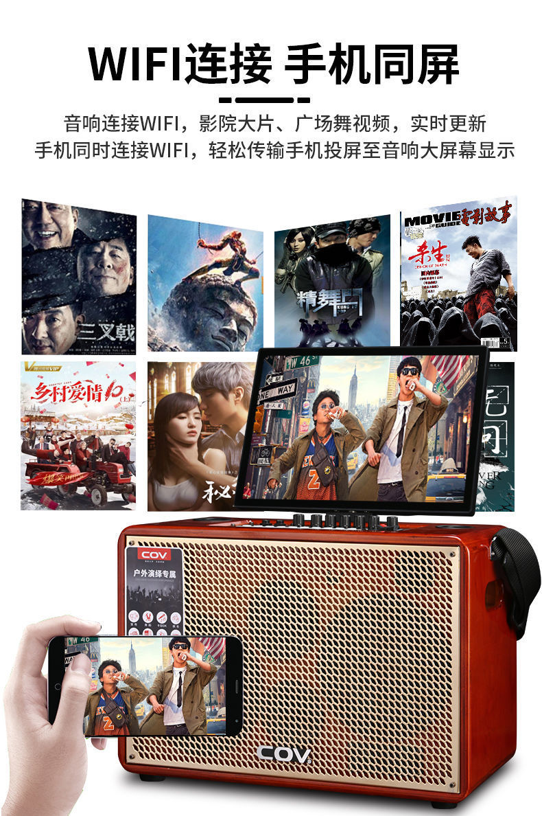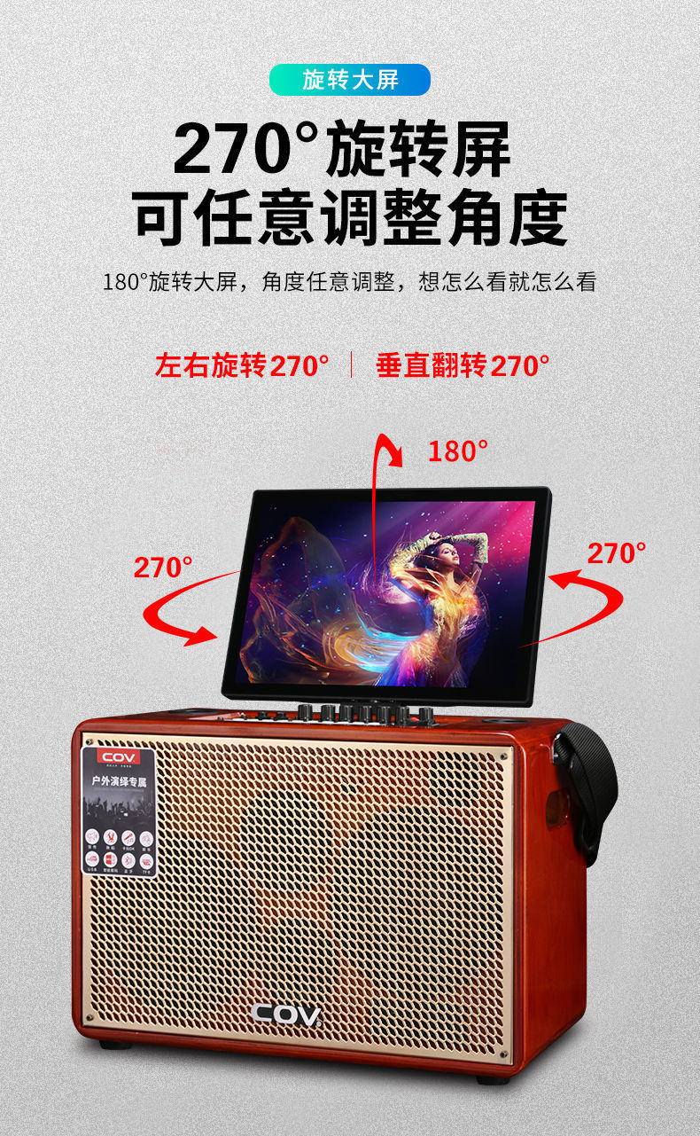 디스플레이 화면 휴대용 소형 스퀘어 댄스 비디오 머신 스피커가있는 COV 고출력 야외 가라오케 오디오
