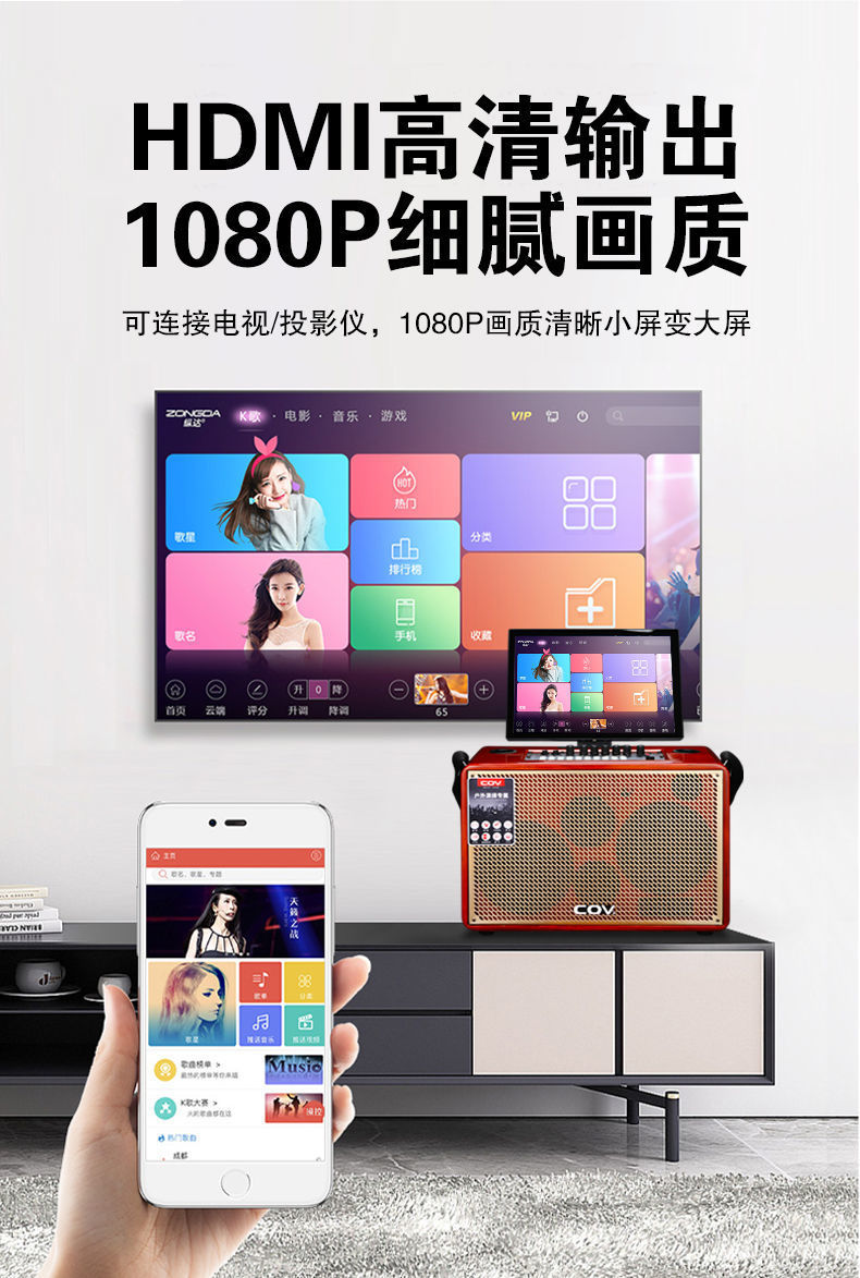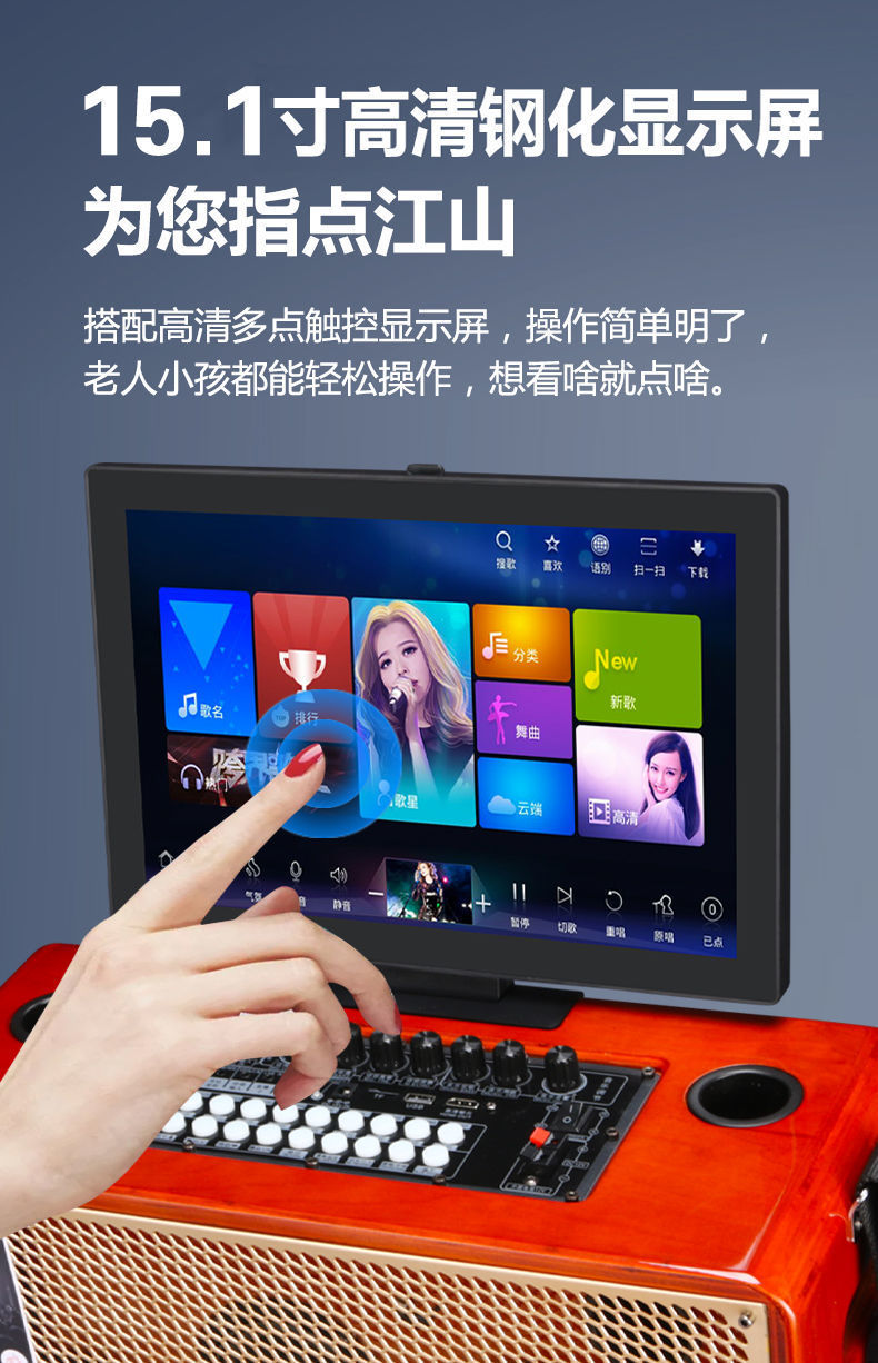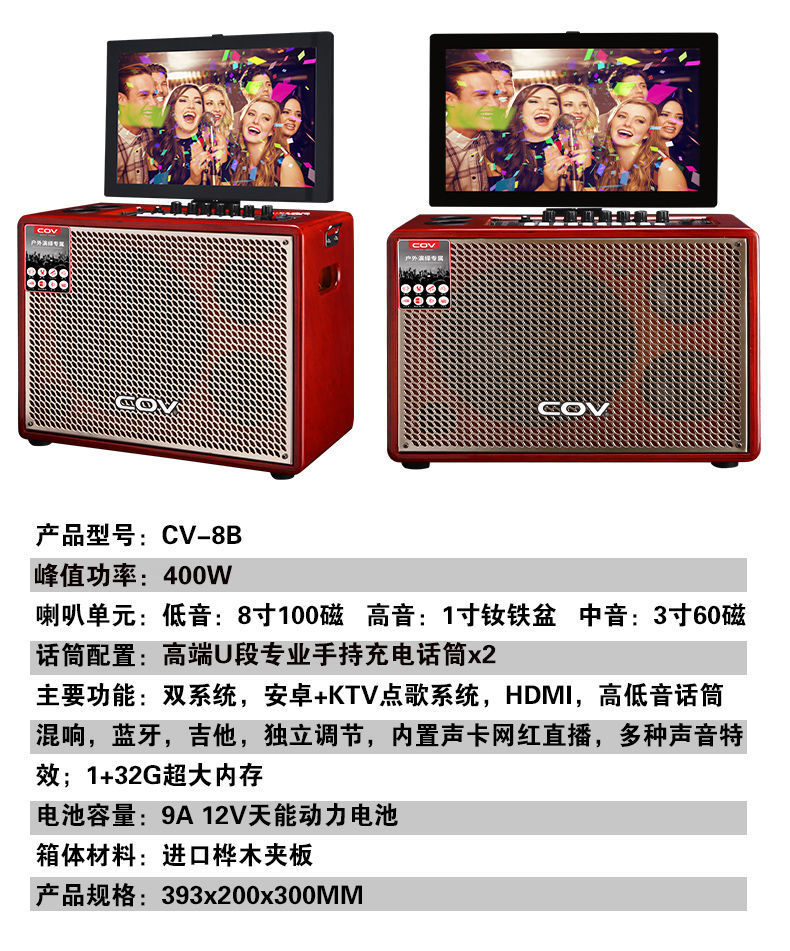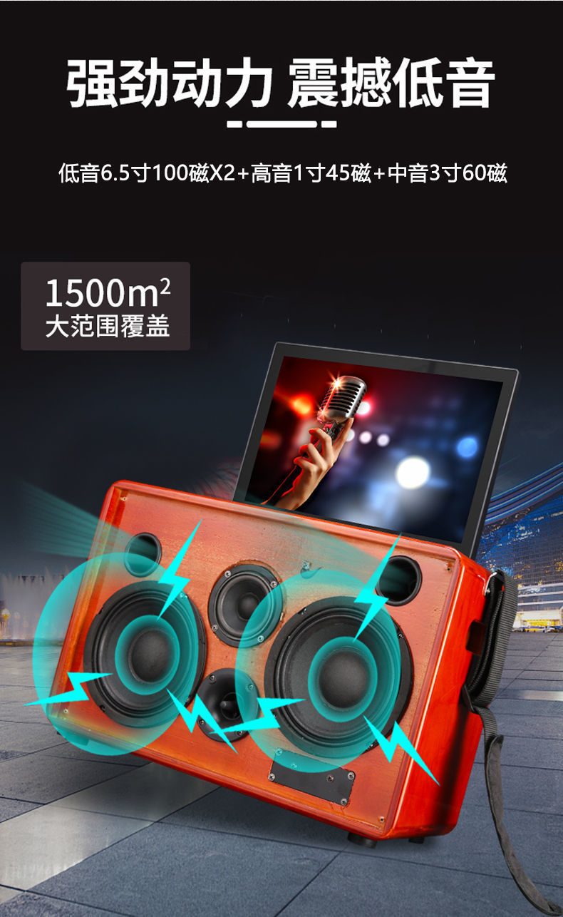 디스플레이 화면 휴대용 소형 스퀘어 댄스 비디오 머신 스피커가있는 COV 고출력 야외 가라오케 오디오
