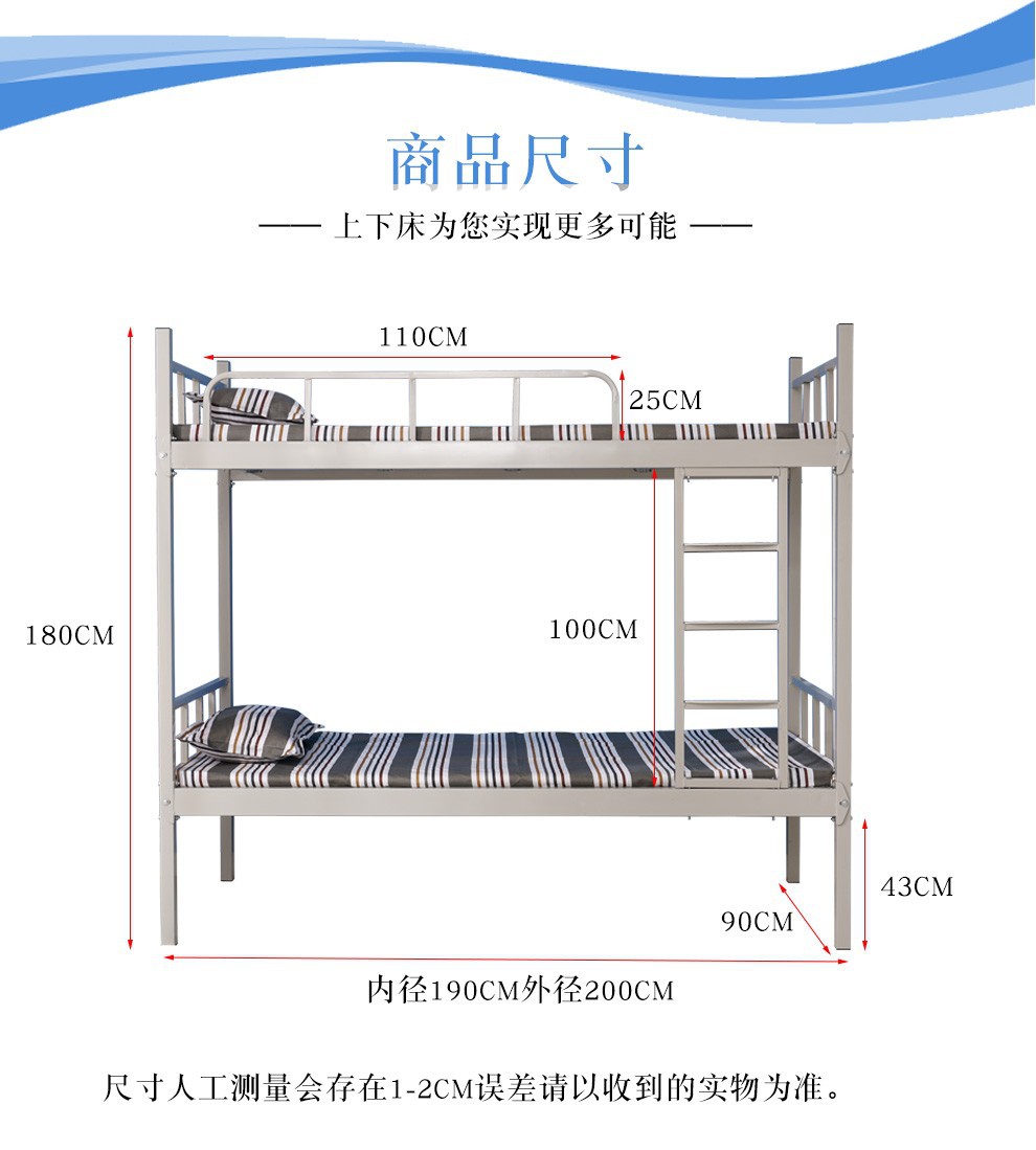학생용 이층 침대, 직원 기숙사, 건설 현장용 이층 철제 침대, 강화 및 두꺼운 이층 철제 침대