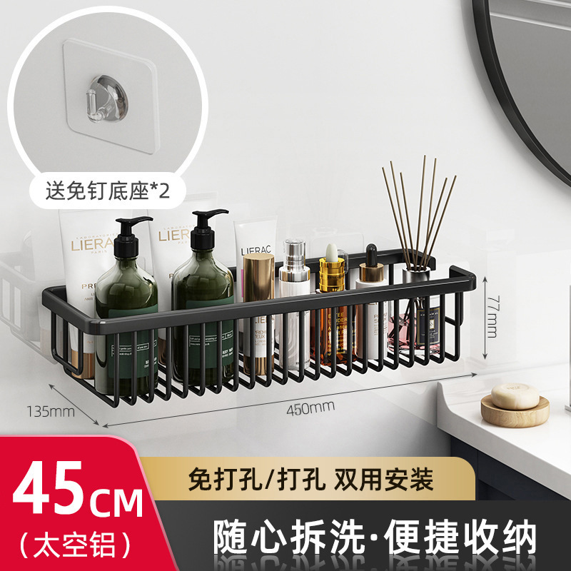 맞춤형 펀치없는 공간 알루미늄 욕실 수납 선반 욕실 벽걸이 형 그물 바구니 화장품 수납 랙 OEM스토어 가기
