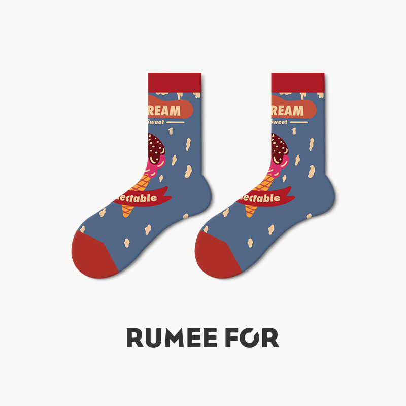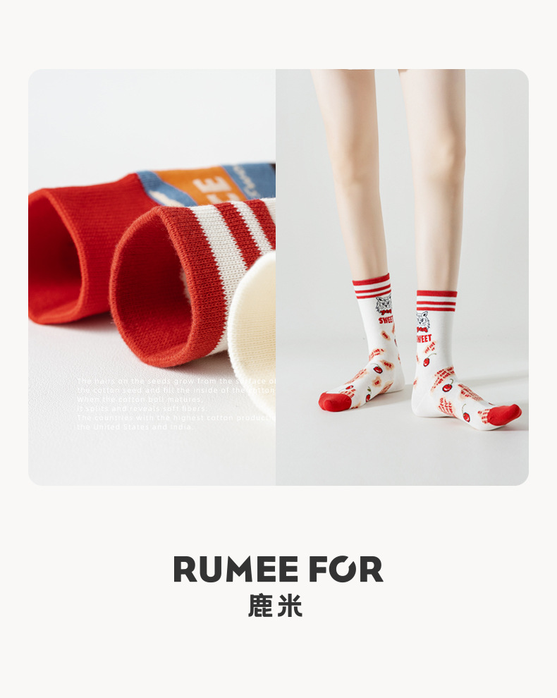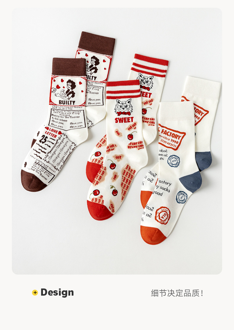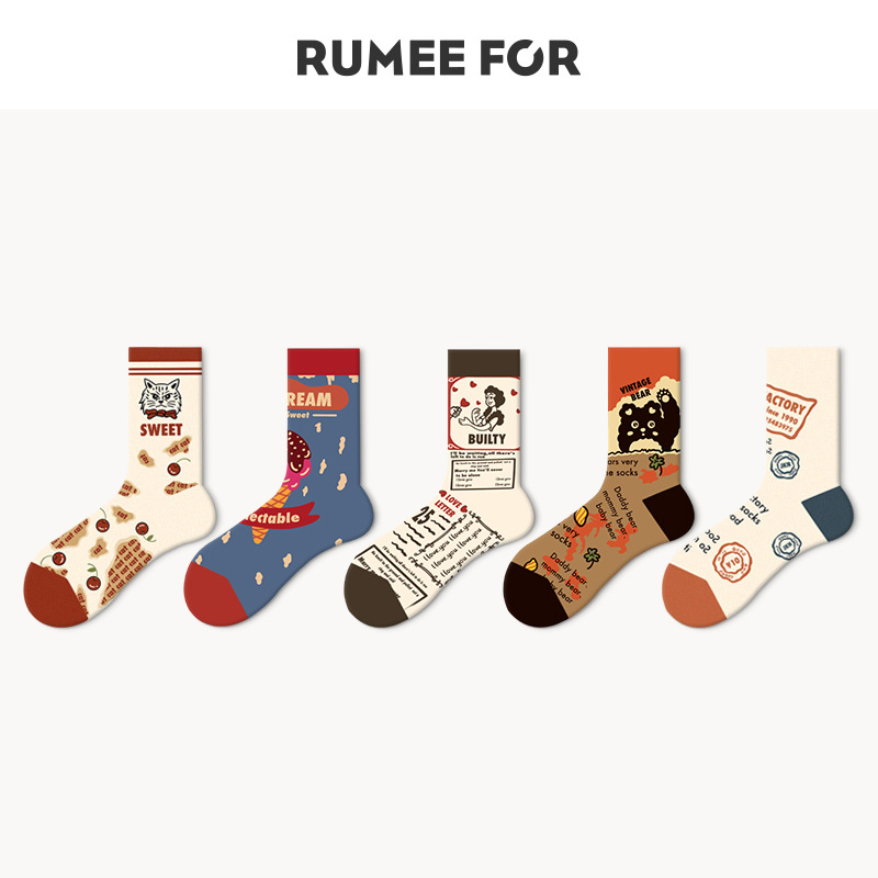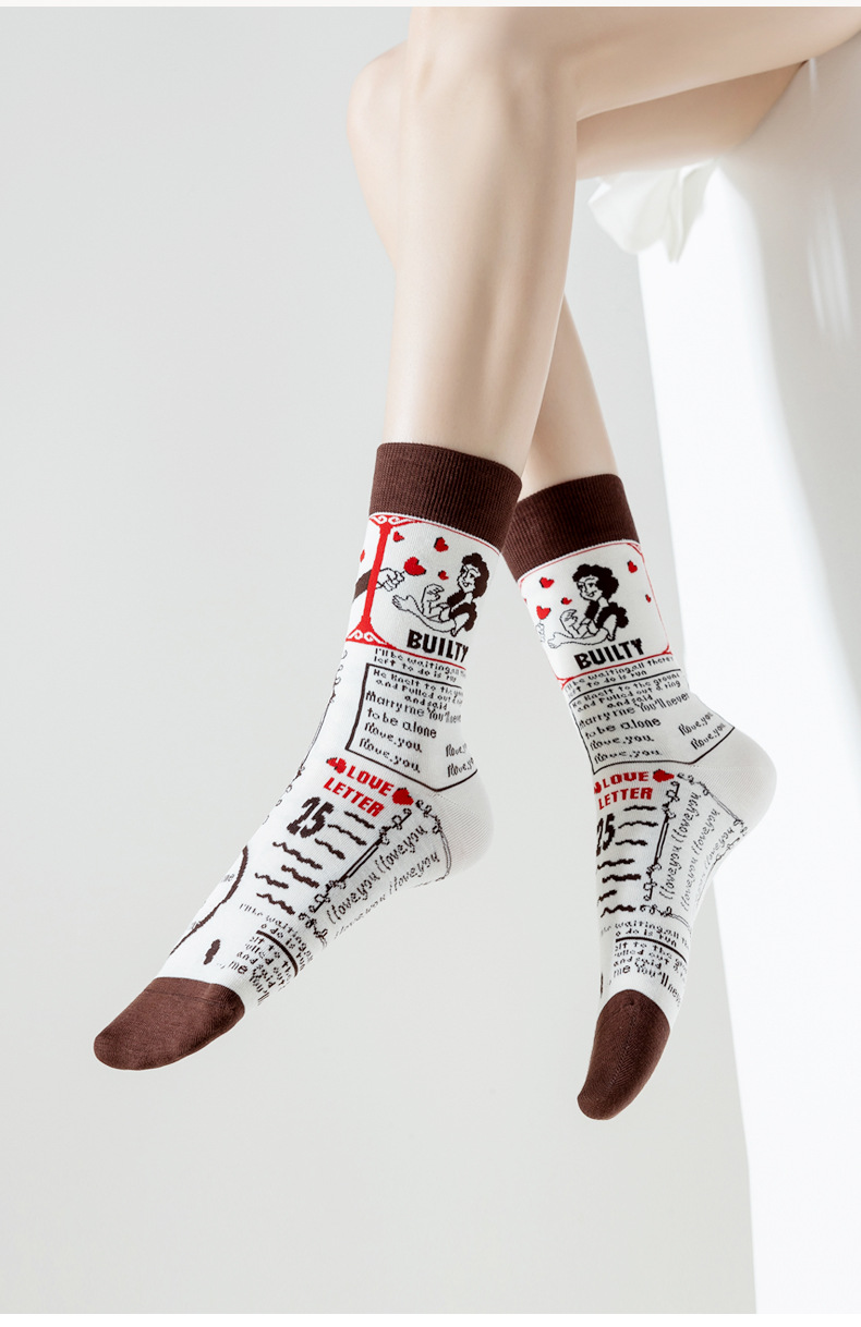 Lumi 프랑스 유화 여성용 중반 송아지 양말 유행 겉옷 미끄럼 방지 유행 양말 복고풍 패션 커플 봄, 가을 양말