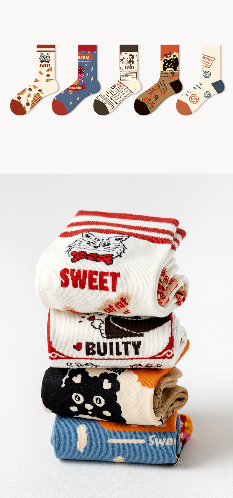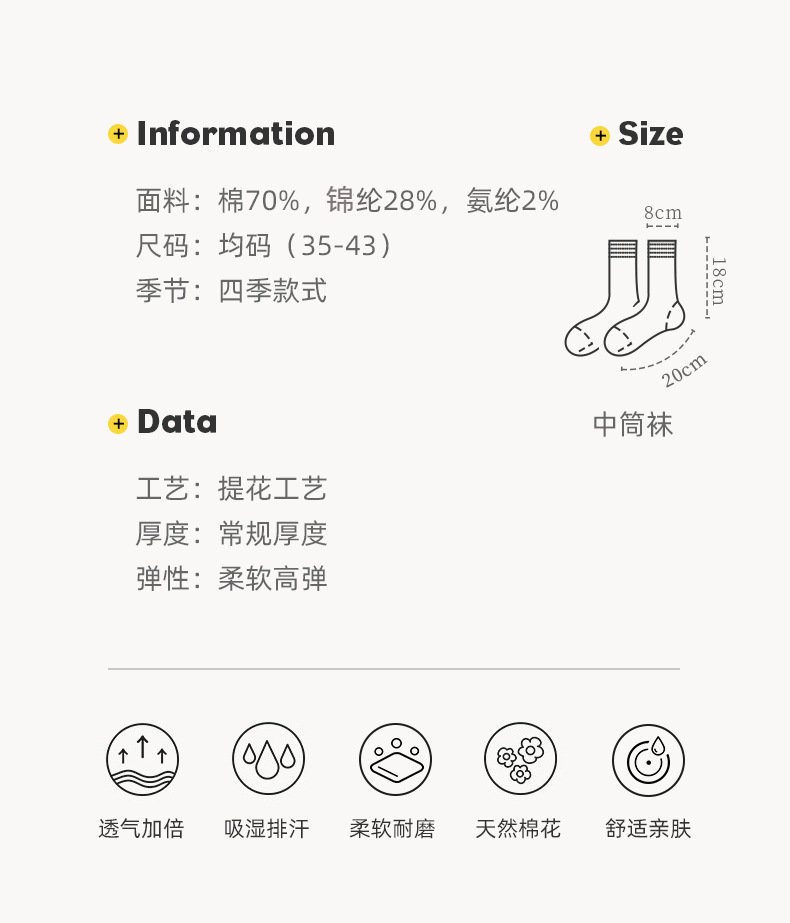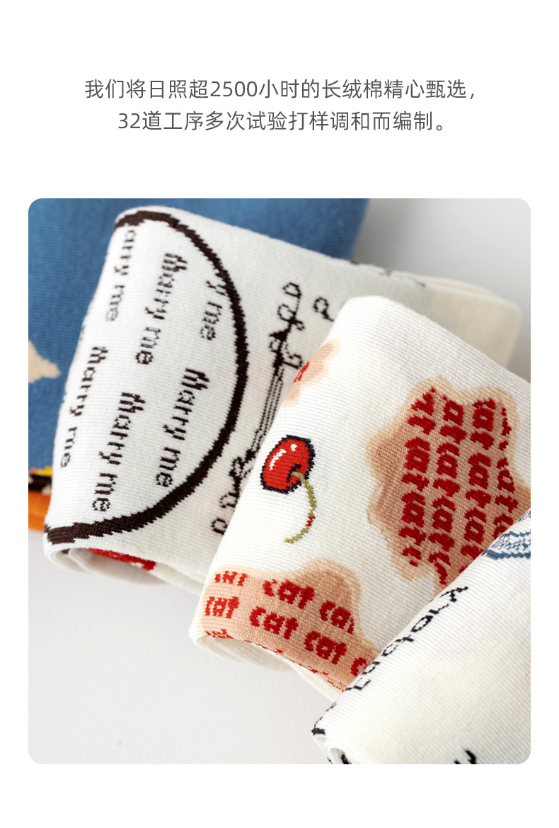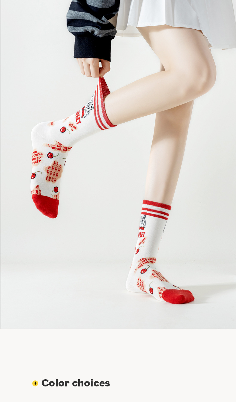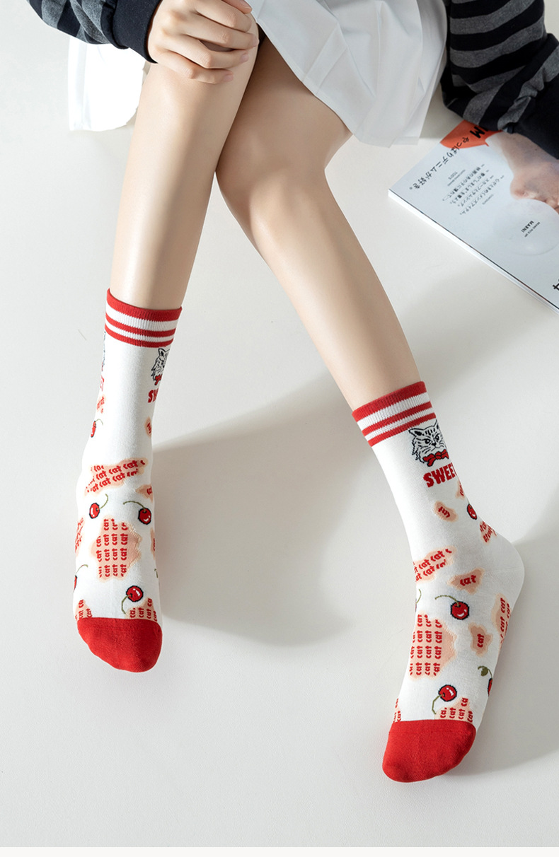 Lumi 프랑스 유화 여성용 중반 송아지 양말 유행 겉옷 미끄럼 방지 유행 양말 복고풍 패션 커플 봄, 가을 양말