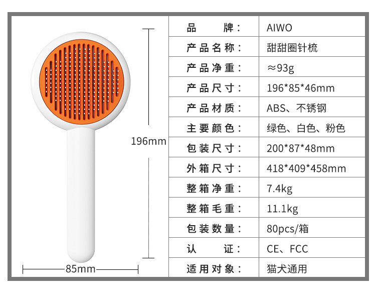 Ai Wo 도넛 애완 동물 빗 고양이 빗 개 바늘 빗 애완 동물 털 제거 애완 동물 브러시 애완 동물 용품 크로스 보더스토어 가기