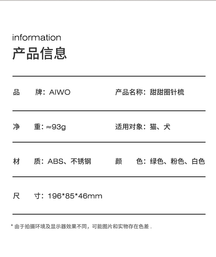 Ai Wo 도넛 애완 동물 빗 고양이 빗 개 바늘 빗 애완 동물 털 제거 애완 동물 브러시 애완 동물 용품 크로스 보더