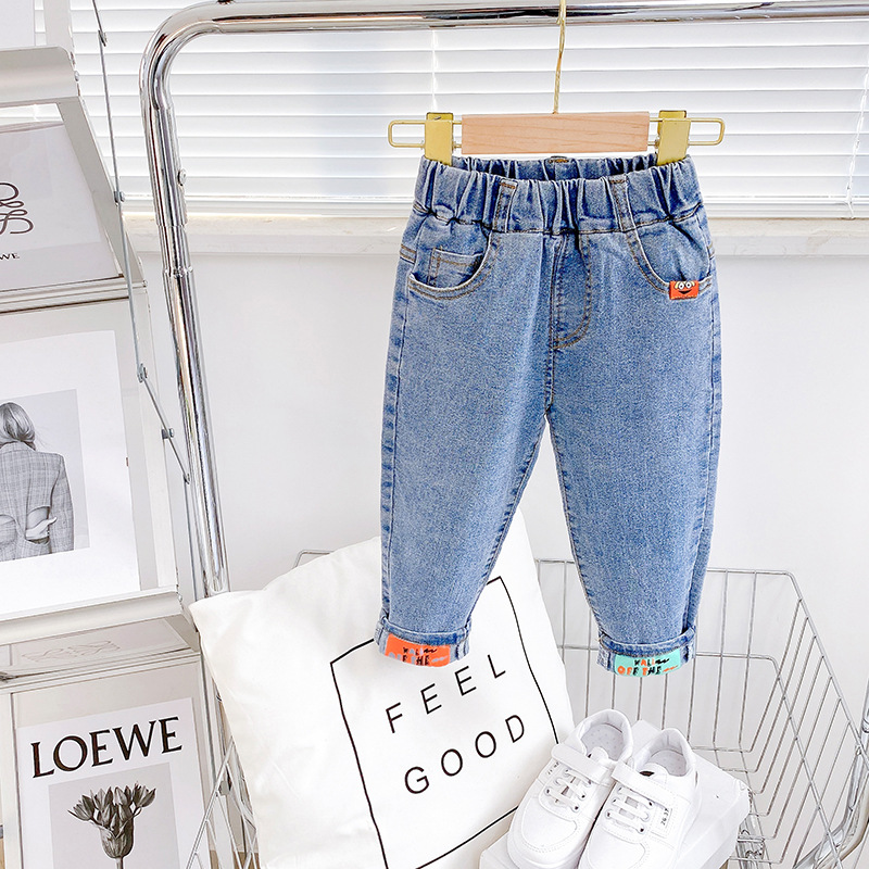 국경 2022 년 봄과 가을 새 한국판 중소형 어린이 데님 바지 어린이 바지 남녀 바지 대외 무역 도매스토어 가기