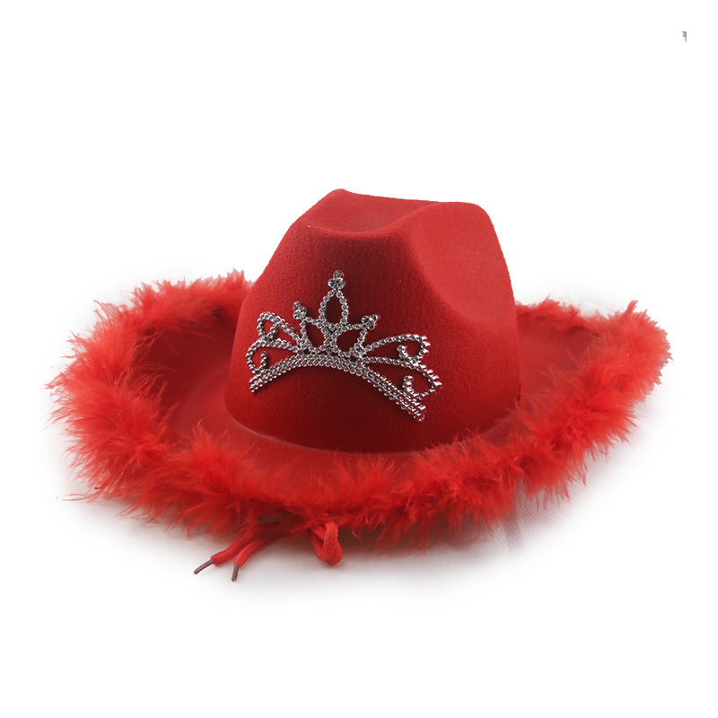크로스 보더 핑크 실버 깃털 카우보이 모자 여자의 부직포 크라운 웨스턴 카우보이 모자 재즈 컬링 탑 모자 에스토어 가기