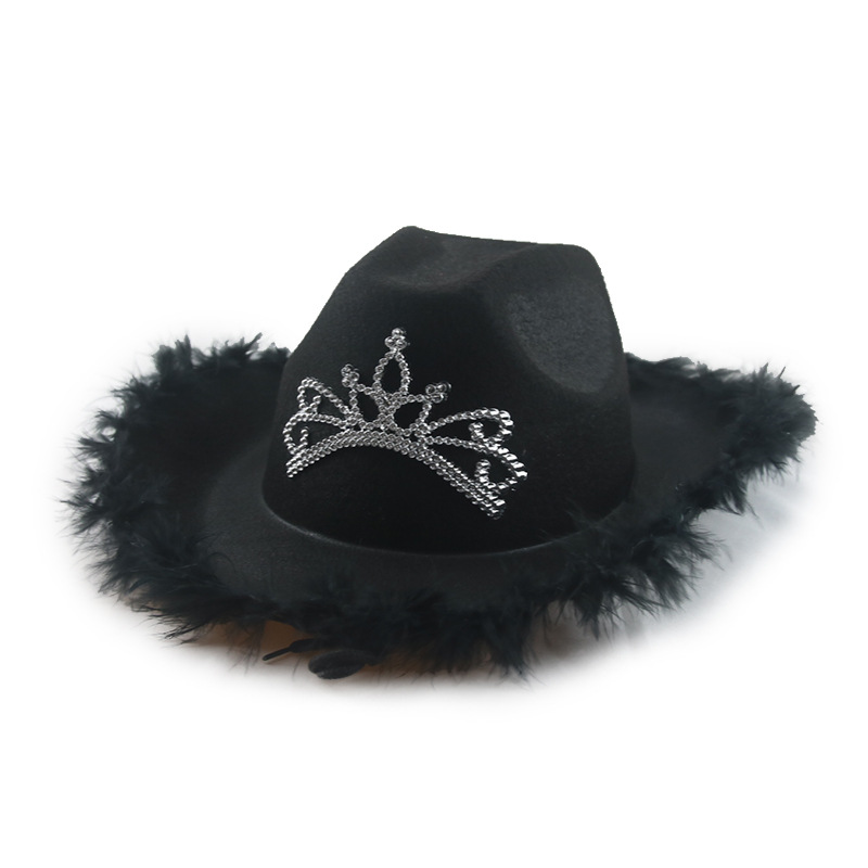 크로스 보더 핑크 실버 깃털 카우보이 모자 여자의 부직포 크라운 웨스턴 카우보이 모자 재즈 컬링 탑 모자 에