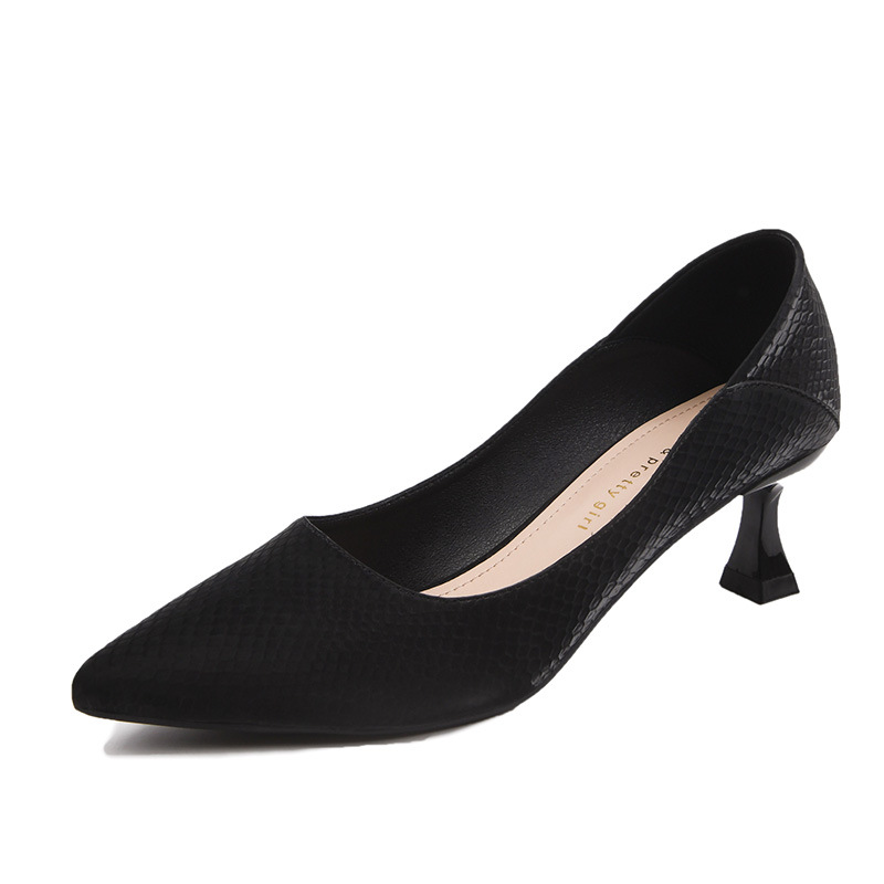 020466-1 하이힐 뾰족코 블랙 전문직용 구두 부드러운 표면 넓은 사이즈 여성화 41-43 슬림힐