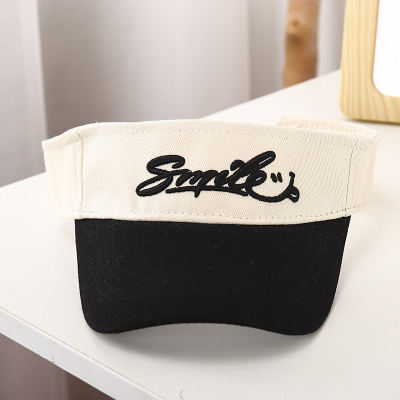 Tuyu 22 여름 어린이 모자 자수 미소 편지 빈 탑 모자 여름 야외 태양 보호 태양 모자