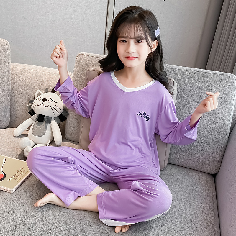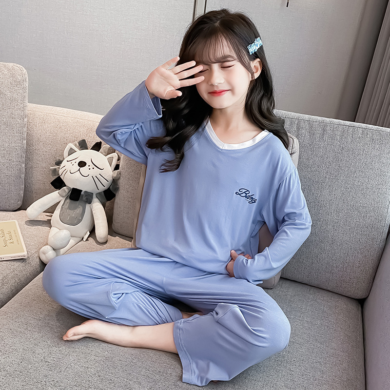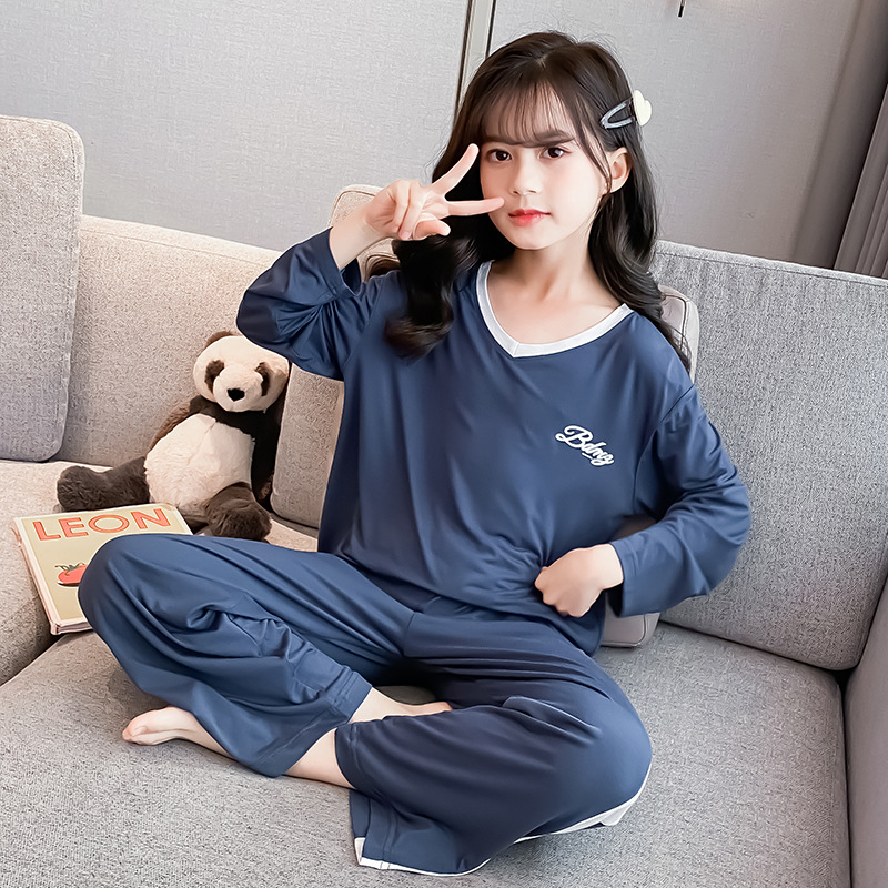 어린이 가정복 모달 여름 얇은 긴팔 중형 어린이 여름 에어컨 옷 세트 여아 아이스 실크 잠옷스토어 가기