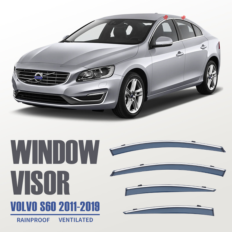 • 볼보 S60 [MK2-2011-2018] 아크릴 [미러 라인 포함] 차량용 창문 비 가리개