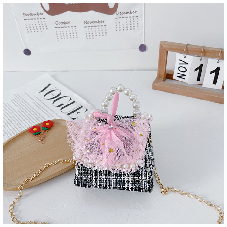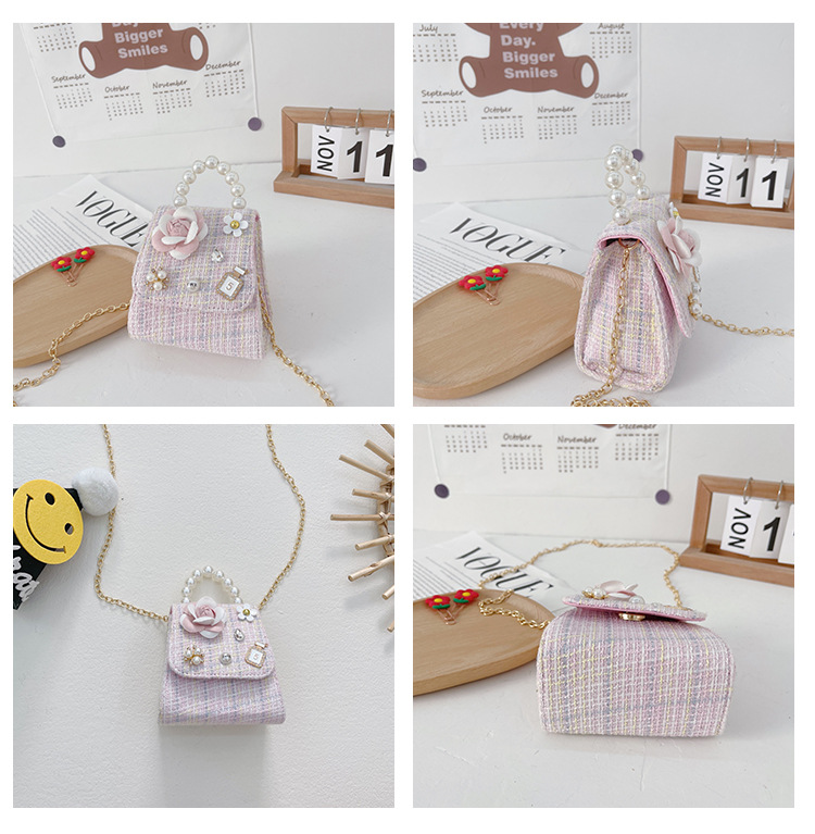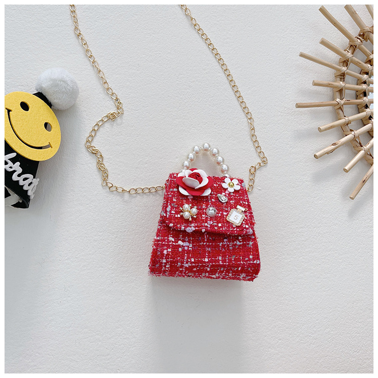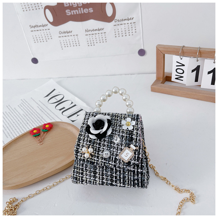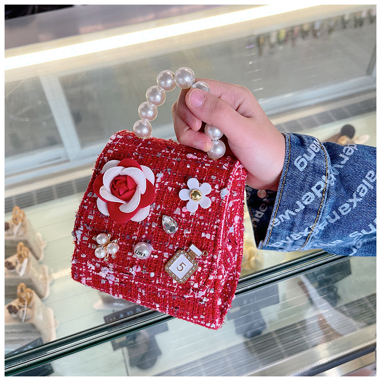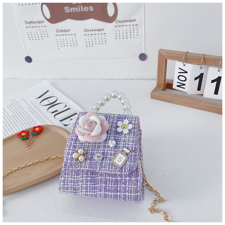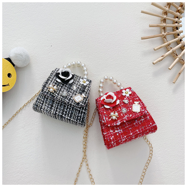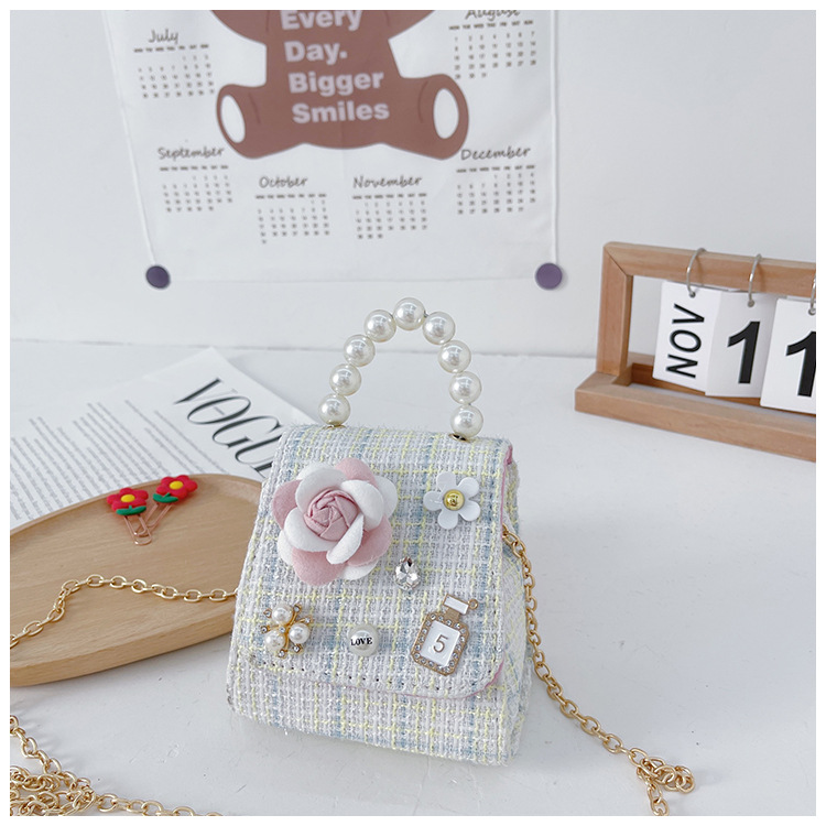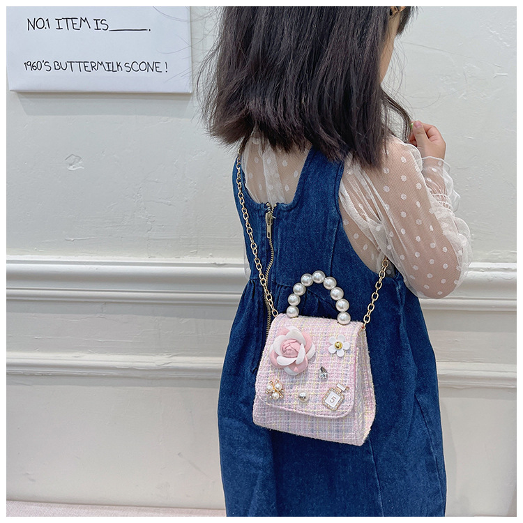 2022 새로운 공주 핸드백 한국식 샤넬 스타일 어린이 가방 페르시 모직 소녀의 체인 작은 사각형 가방