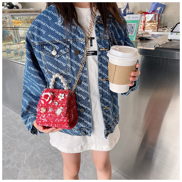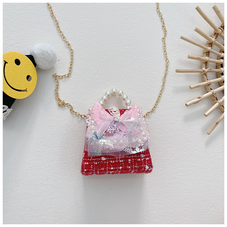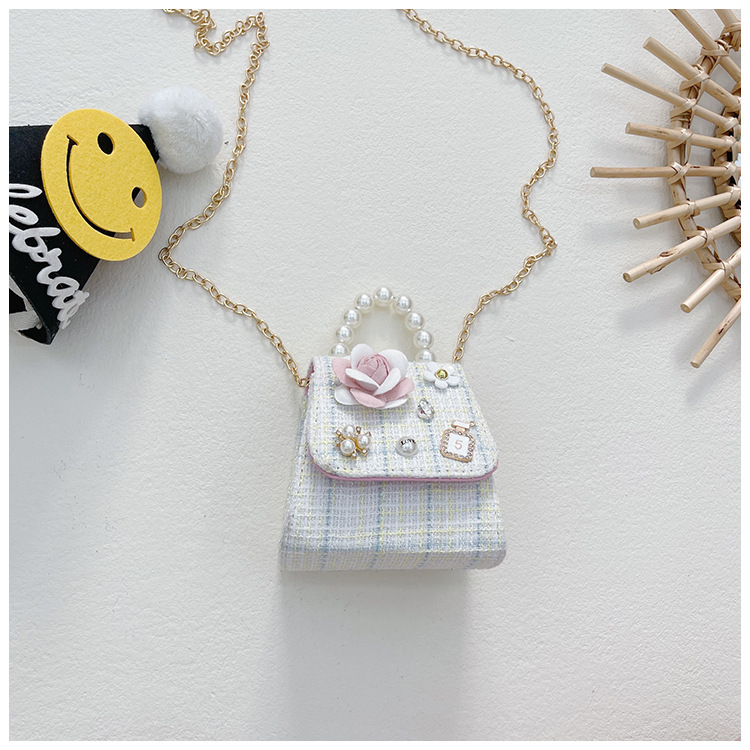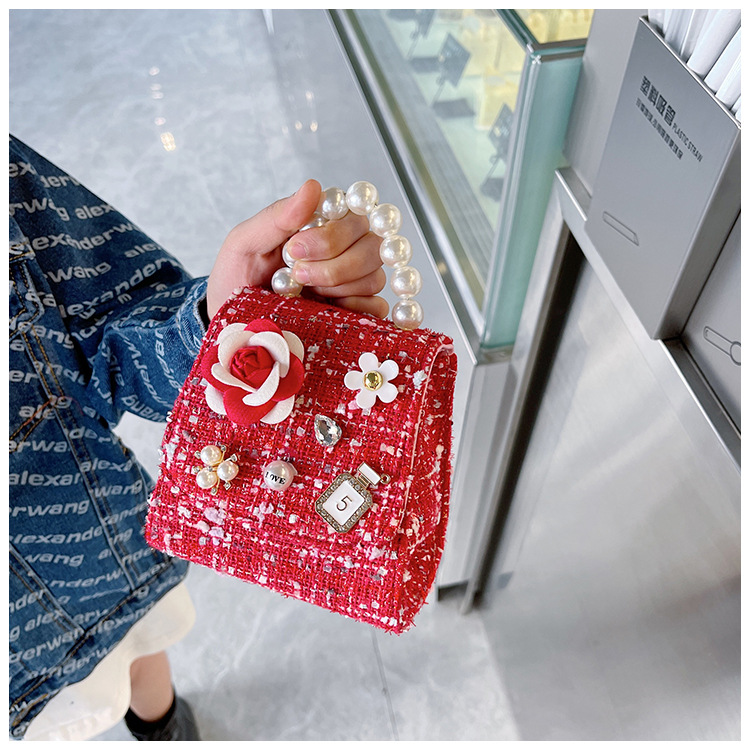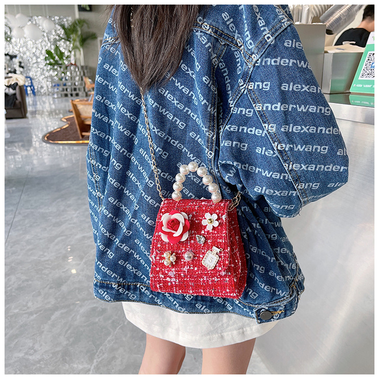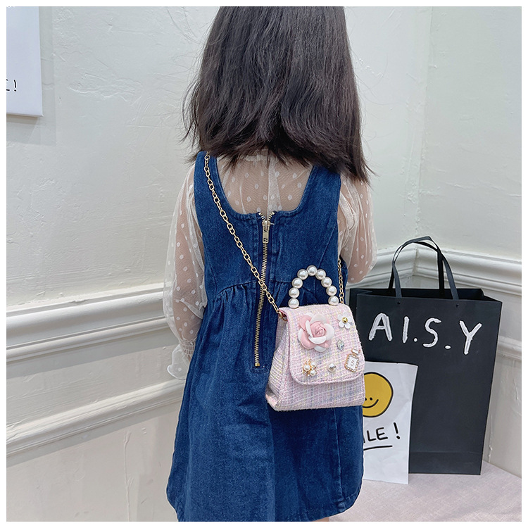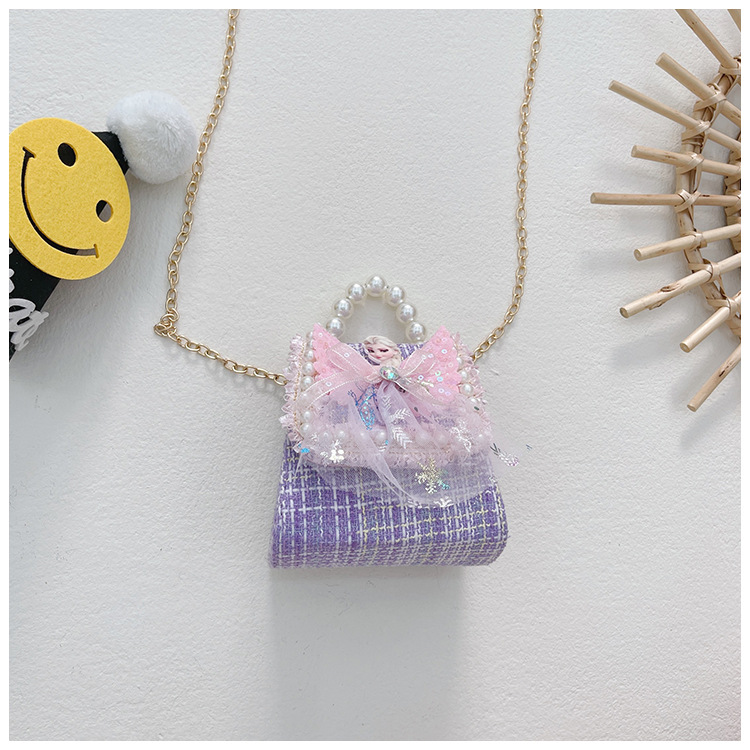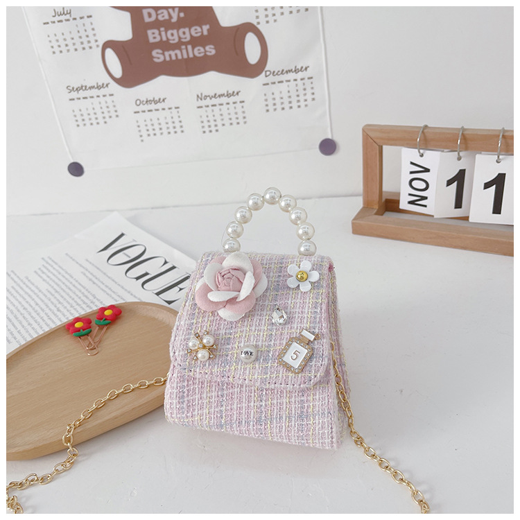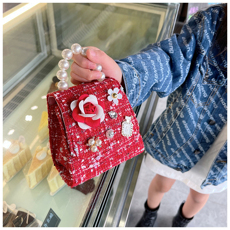 2022 새로운 공주 핸드백 한국식 샤넬 스타일 어린이 가방 페르시 모직 소녀의 체인 작은 사각형 가방