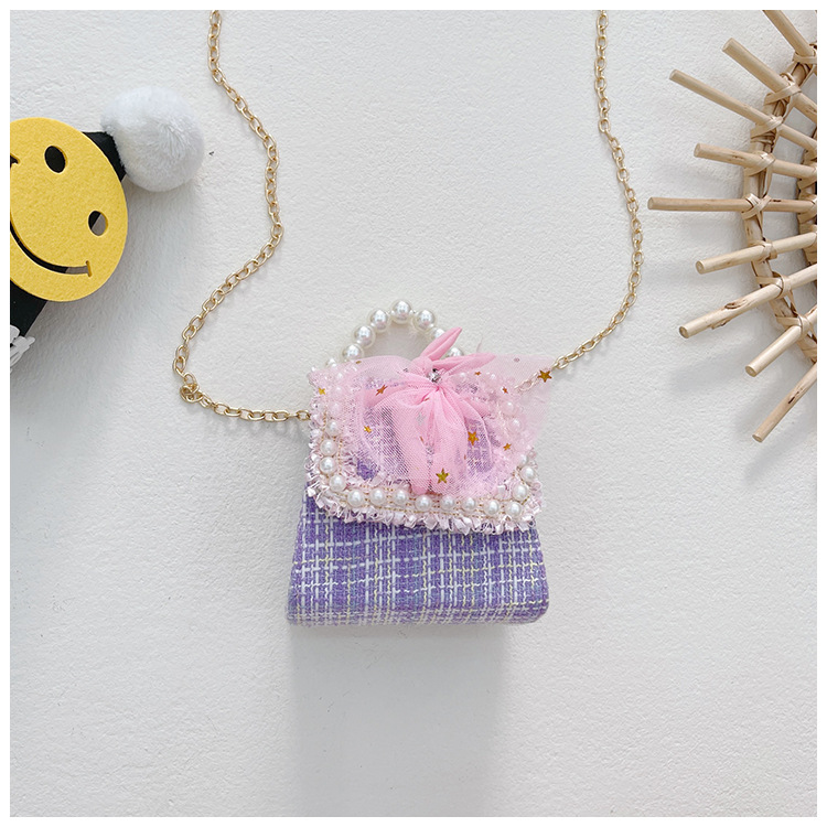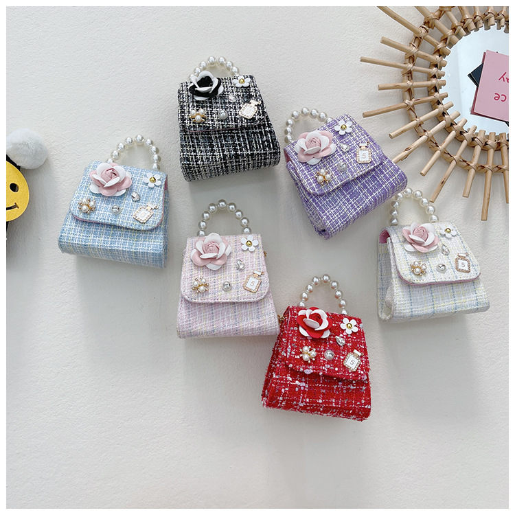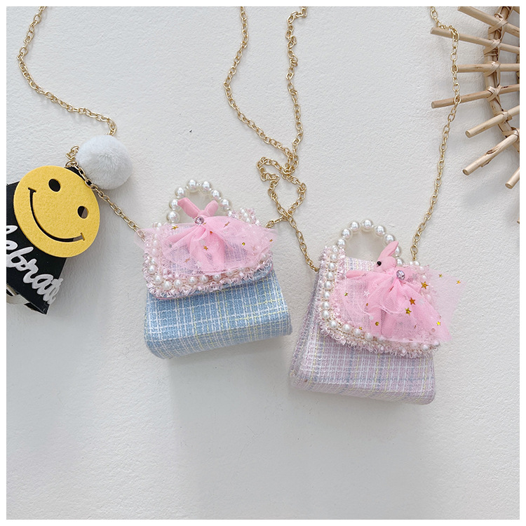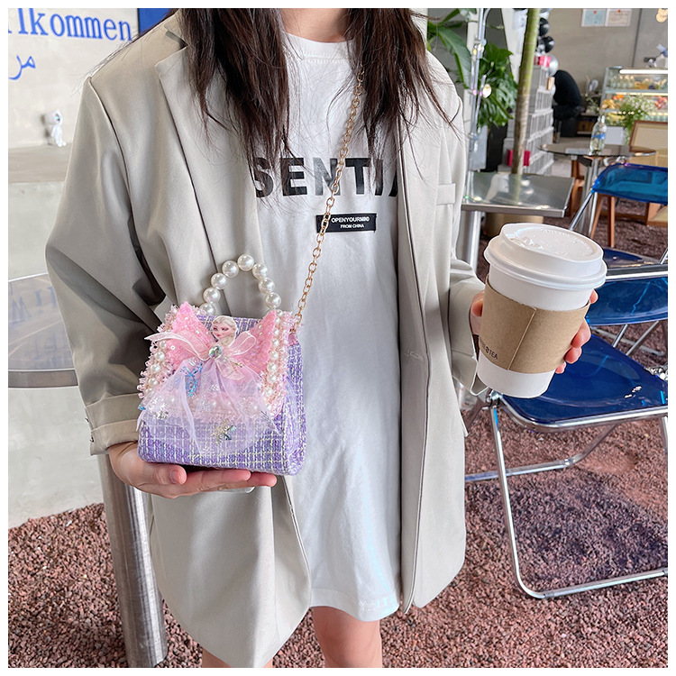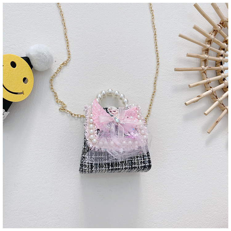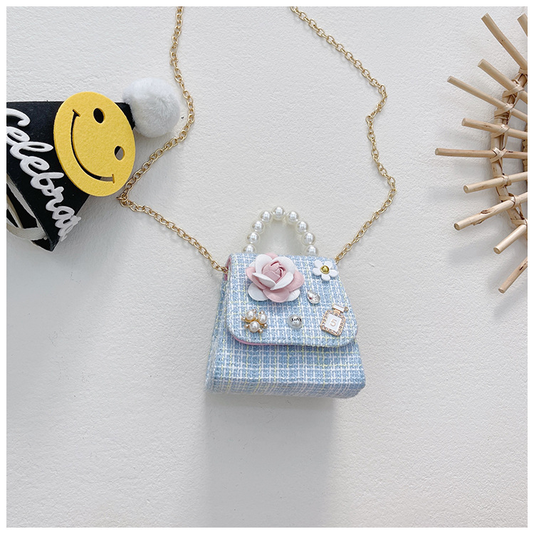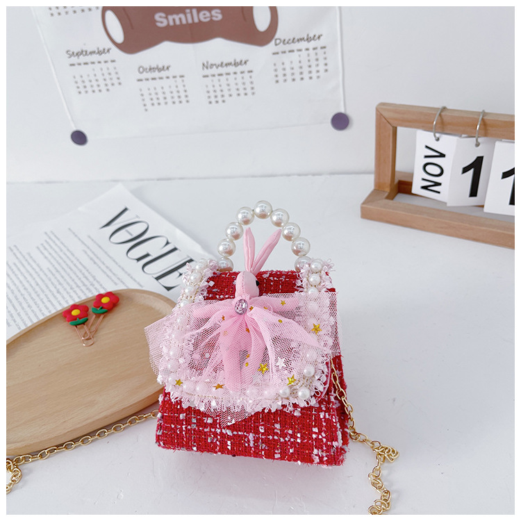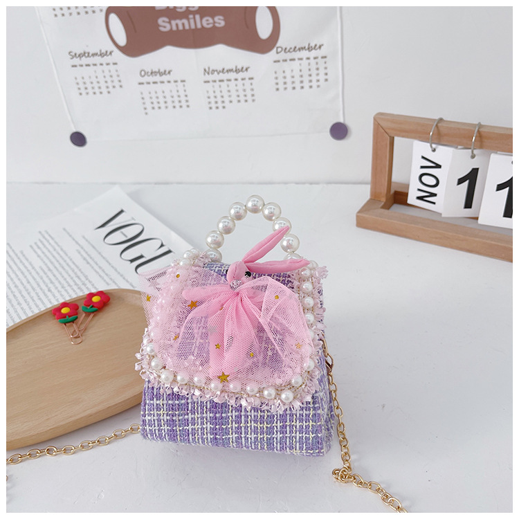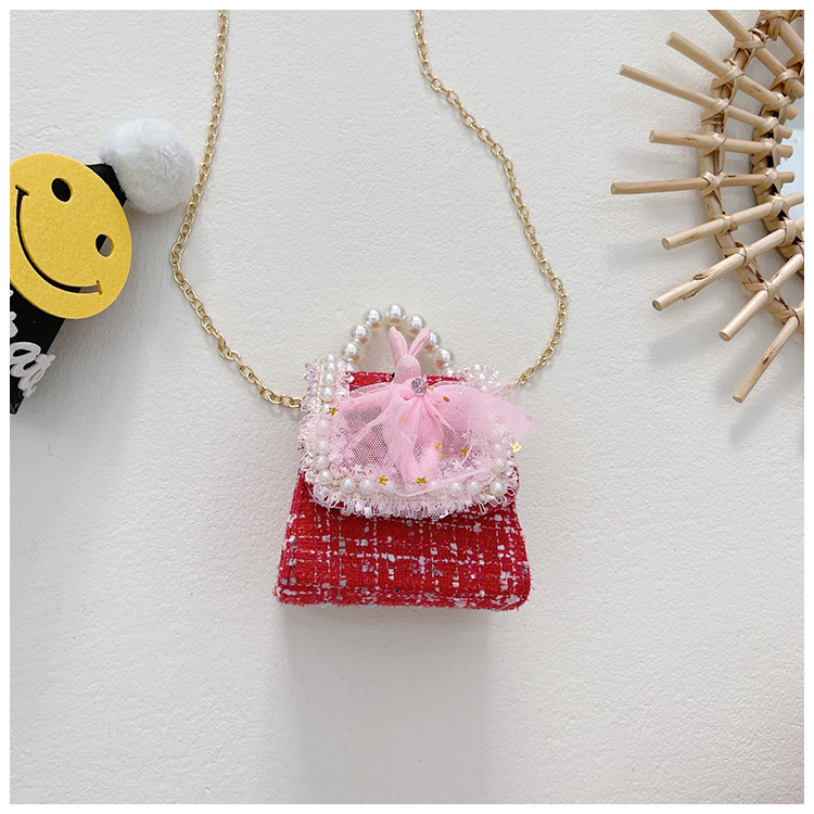 2022 새로운 공주 핸드백 한국식 샤넬 스타일 어린이 가방 페르시 모직 소녀의 체인 작은 사각형 가방