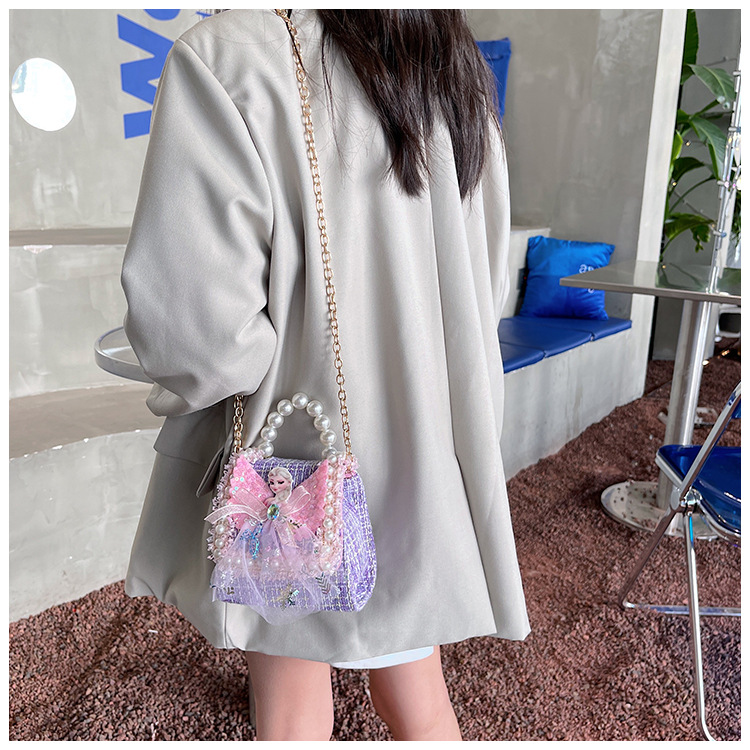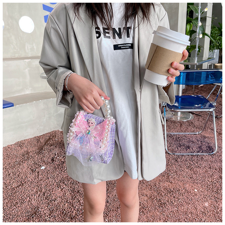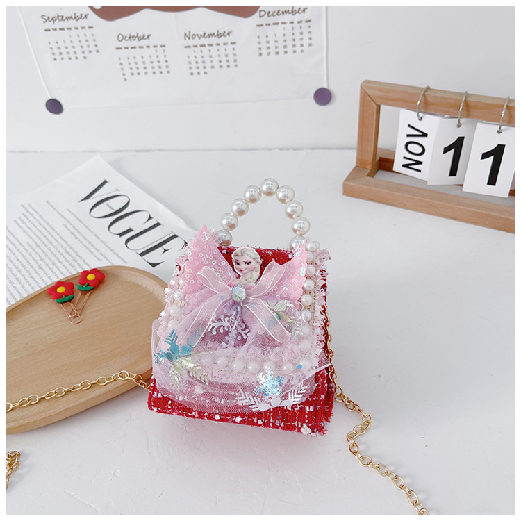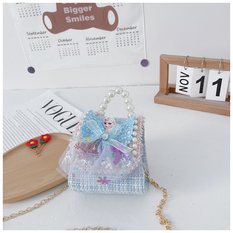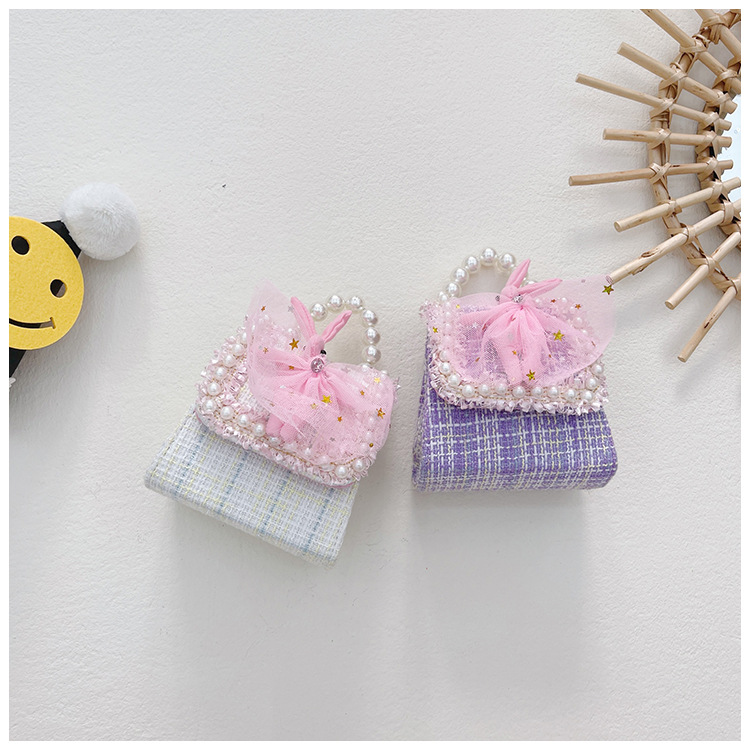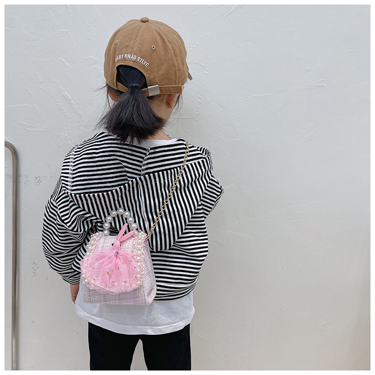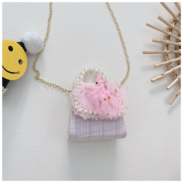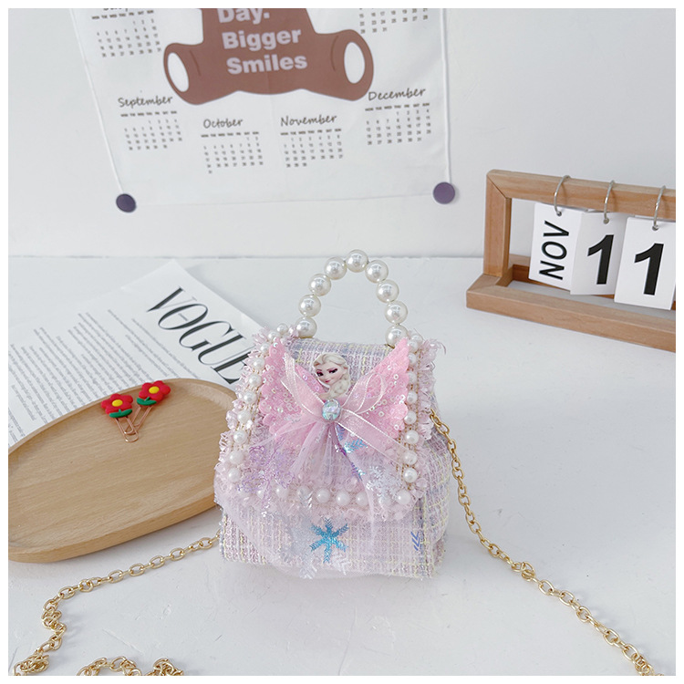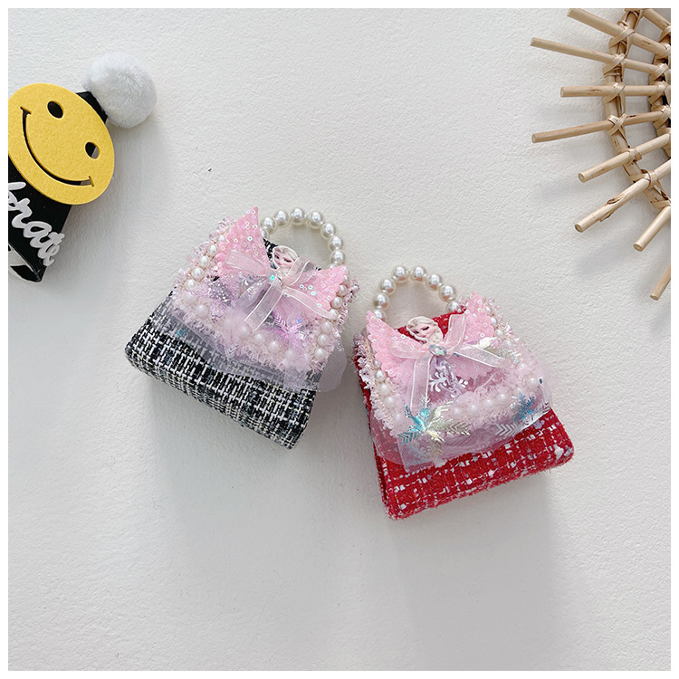 2022 새로운 공주 핸드백 한국식 샤넬 스타일 어린이 가방 페르시 모직 소녀의 체인 작은 사각형 가방