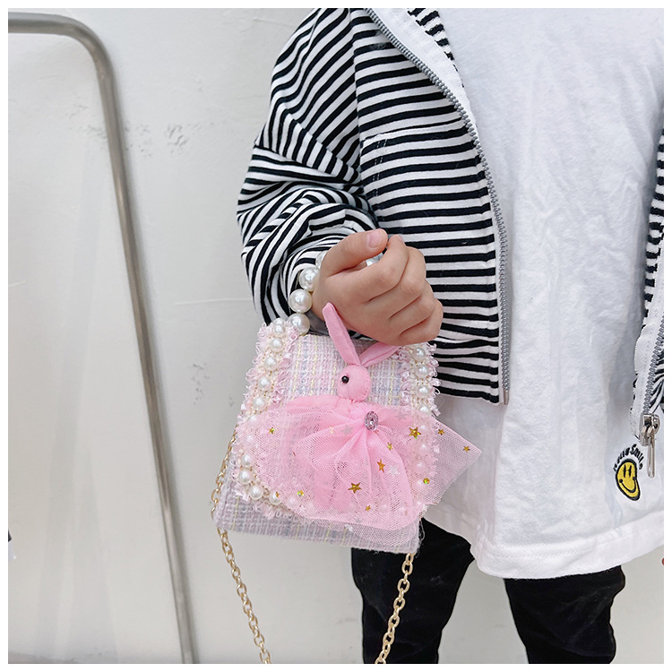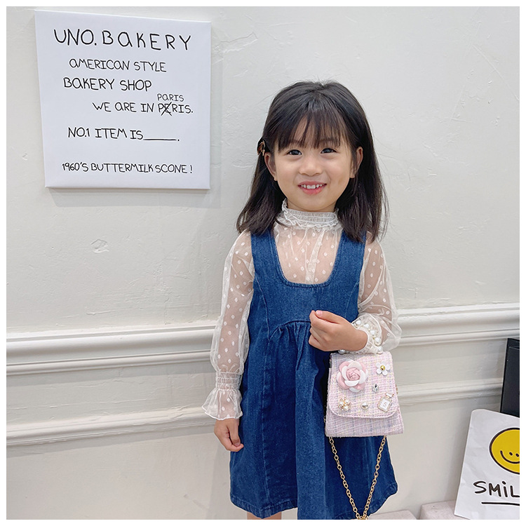 2022 새로운 공주 핸드백 한국식 샤넬 스타일 어린이 가방 페르시 모직 소녀의 체인 작은 사각형 가방스토어 가기