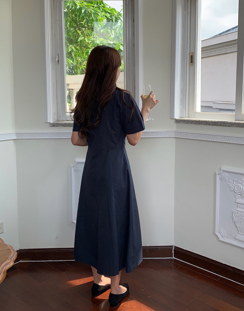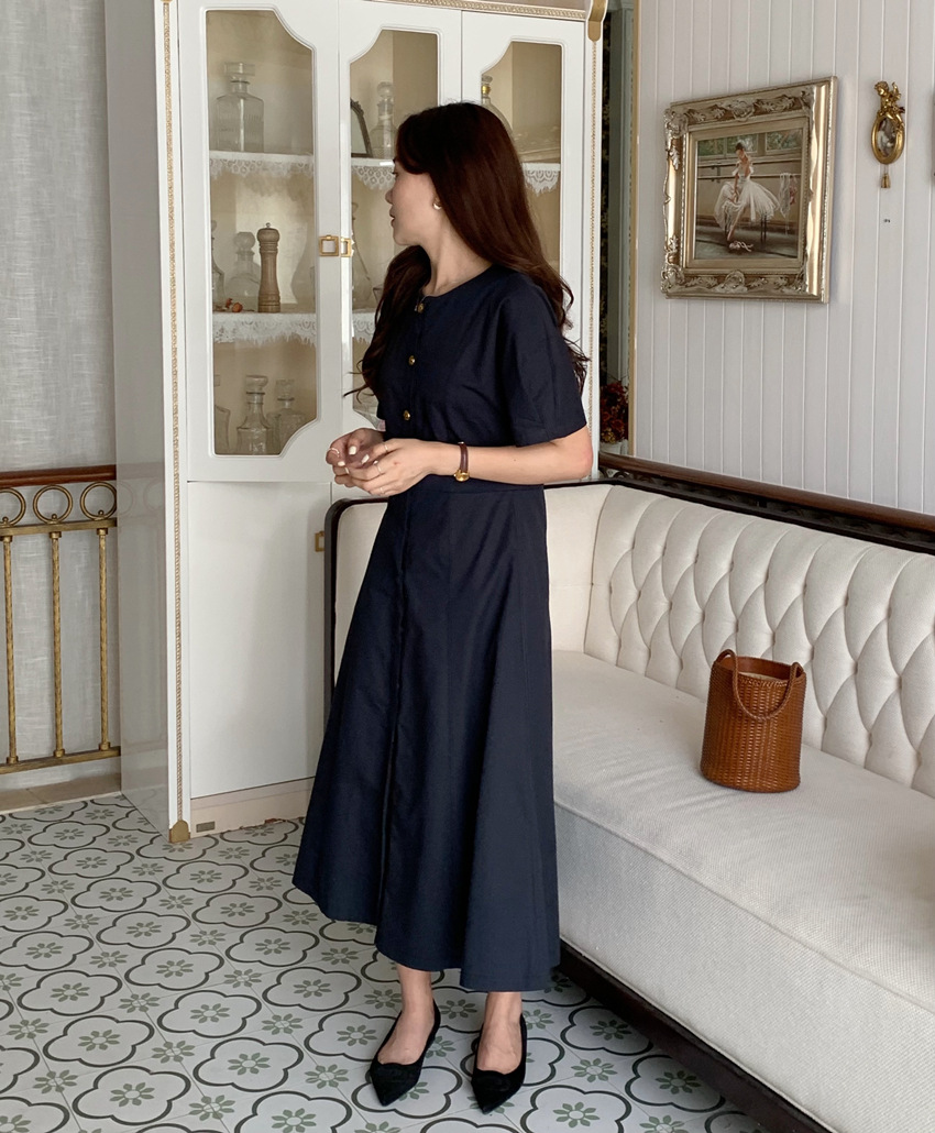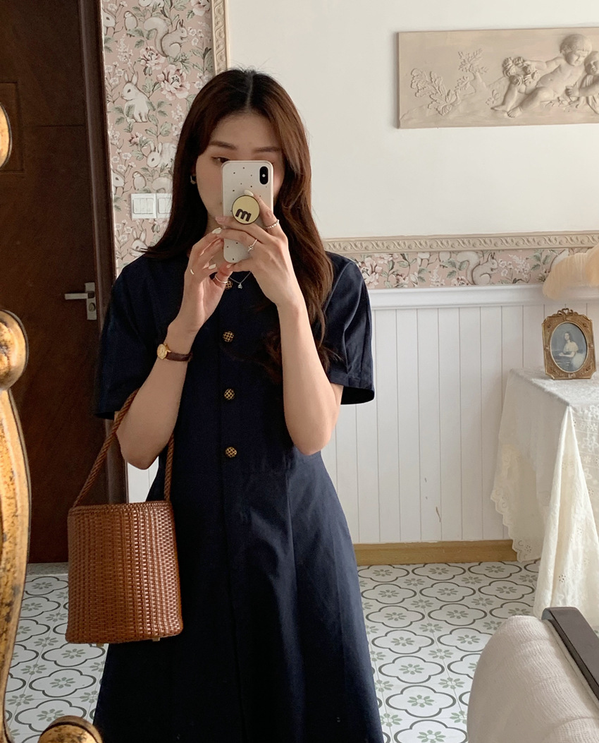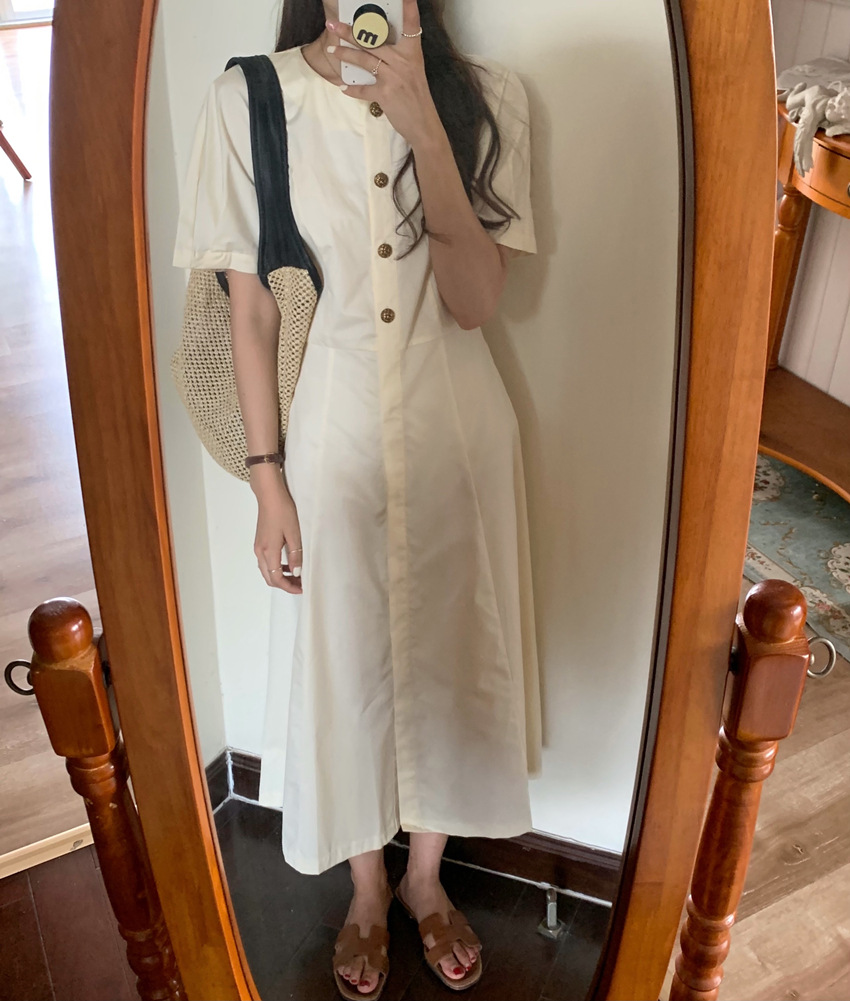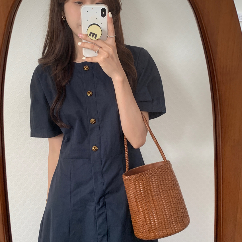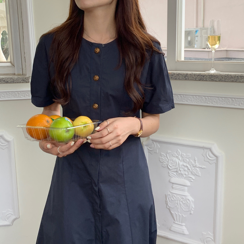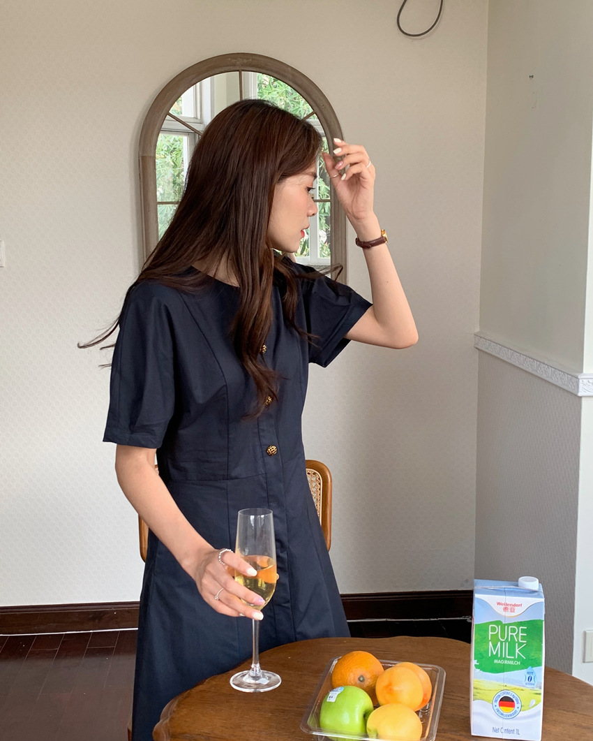 Real Shot 2025 봄 여름 새로운 한국 프랑스 스타일 복고풍 틈새 세련된 싱글 브레스트 허리 슬리밍 드레스스토어 가기