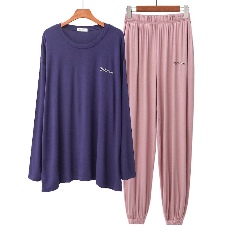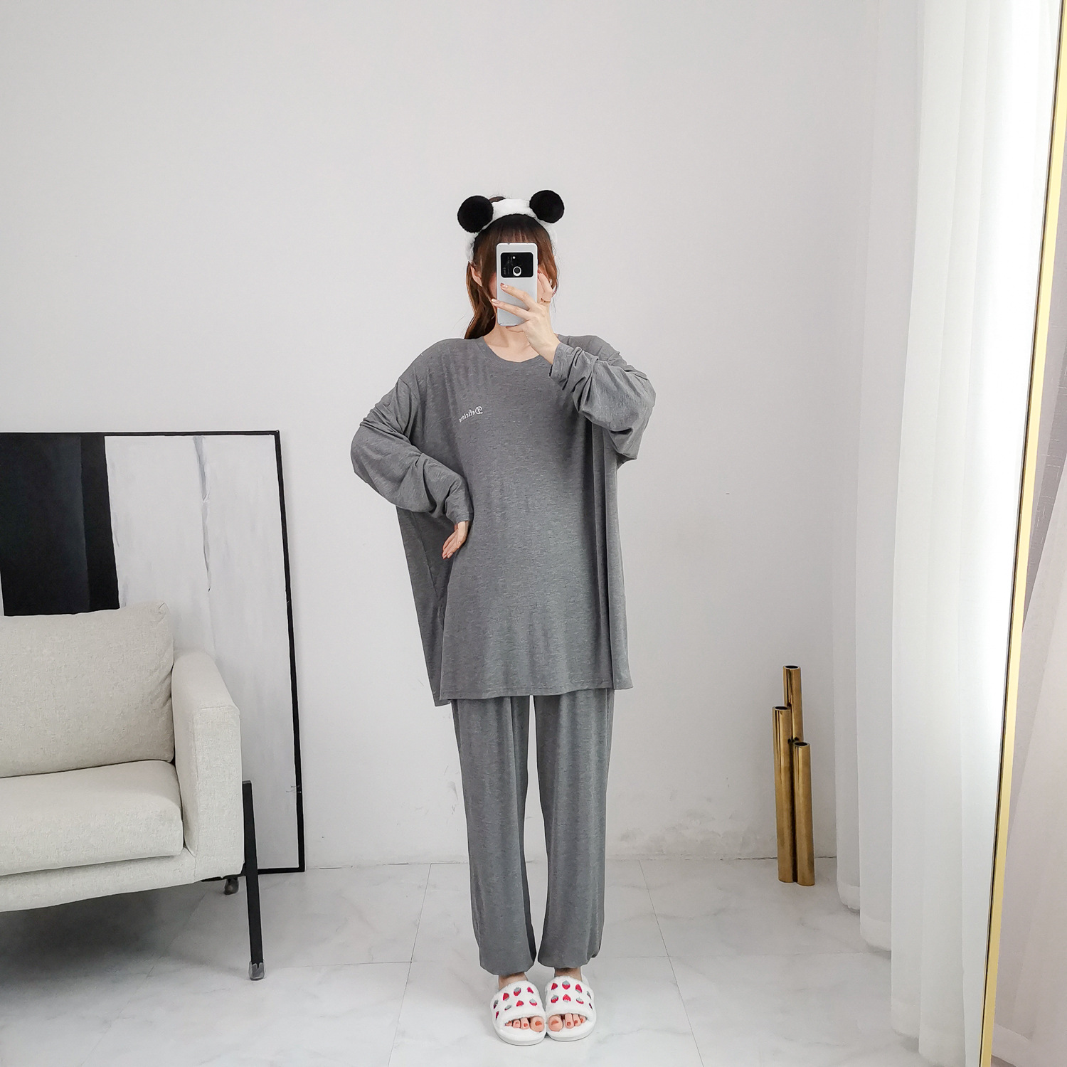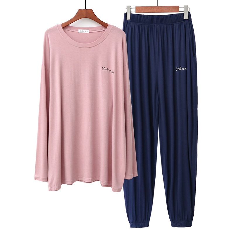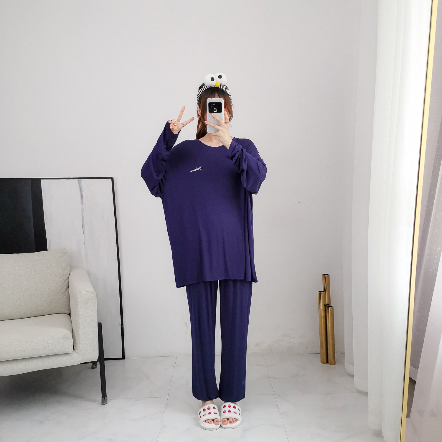봄과 가을 플러스 사이즈 잠옷 여성 200kg 모달 여름 얇은 플러스 지방 플러스 사이즈 긴 소매 세트 가정 의류 통통녀스토어 가기