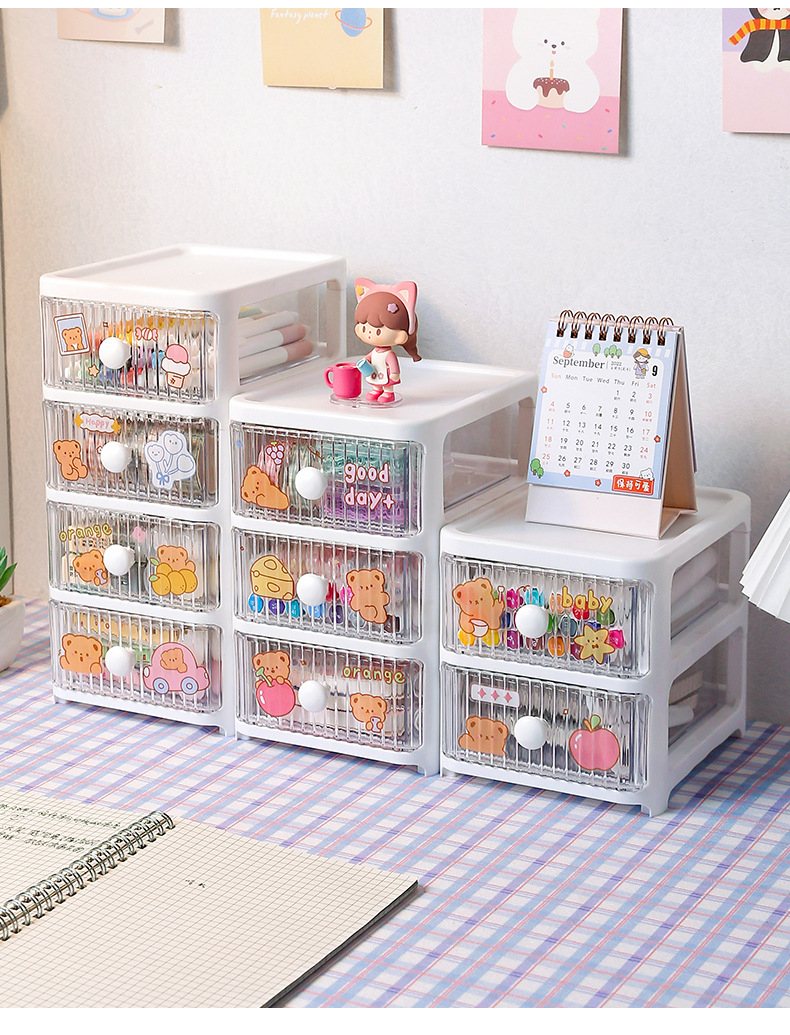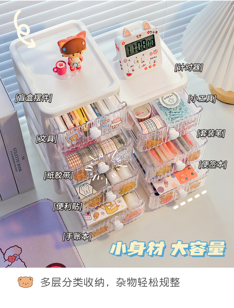 사무실 데스크탑 보관함 투명 작은 서랍 보관 캐비닛 학생 책상 문구 잡화 정리 보관함