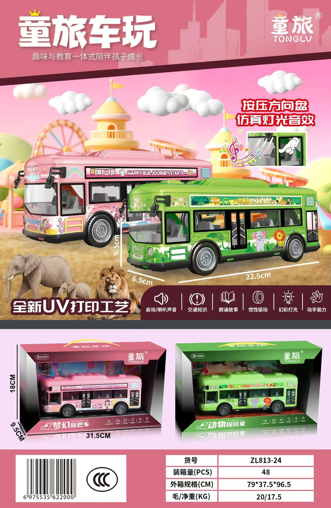 • ZL813-24 사운드 & 라이트 뮤직 동물 탐험차 (2가지 색상 혼합 발송)