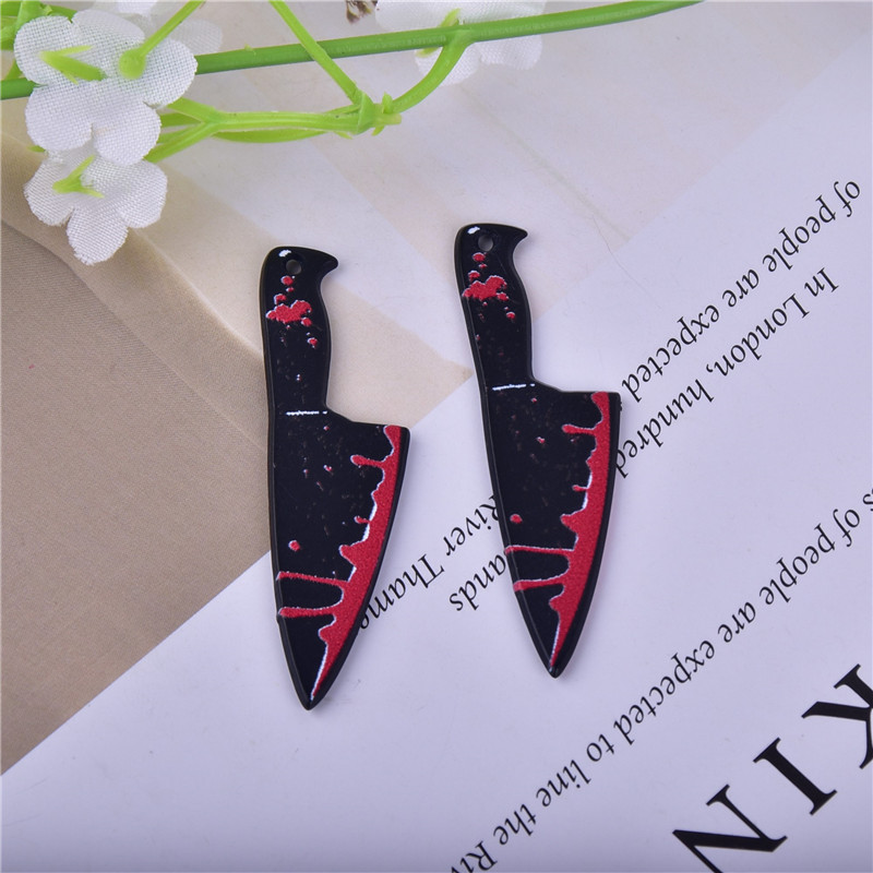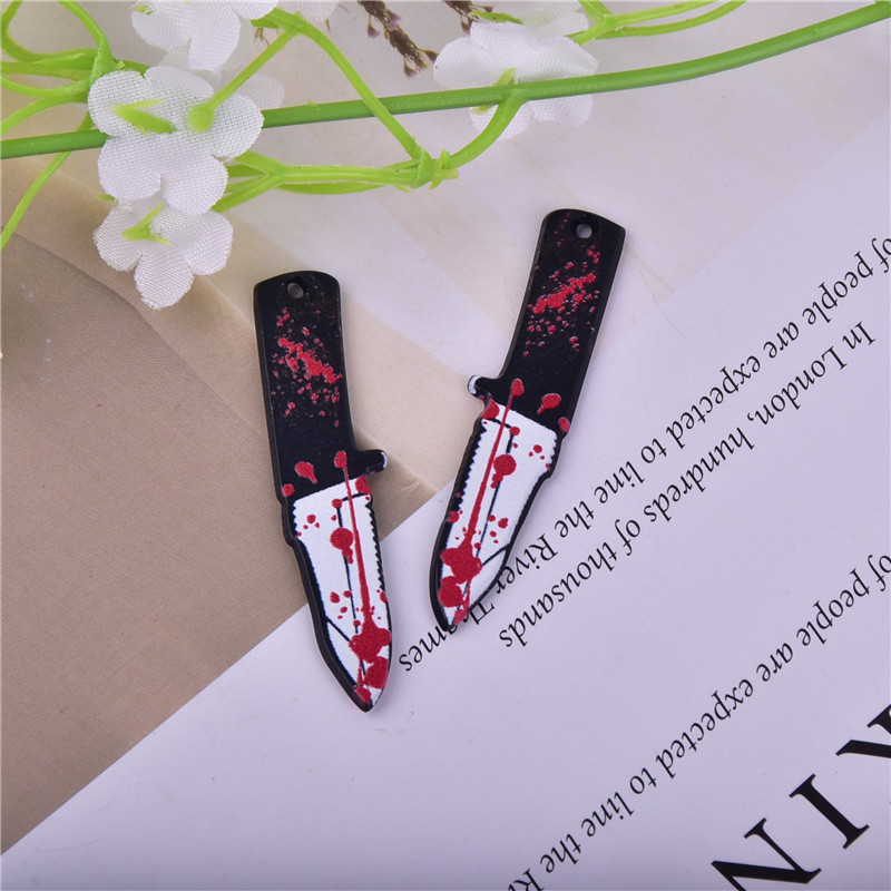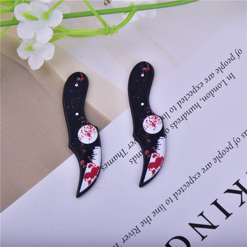 할로윈 아크릴 칼 가위 재미있는 수지 양면 인쇄 보석 펜던트 DIY 귀걸이 펜던트