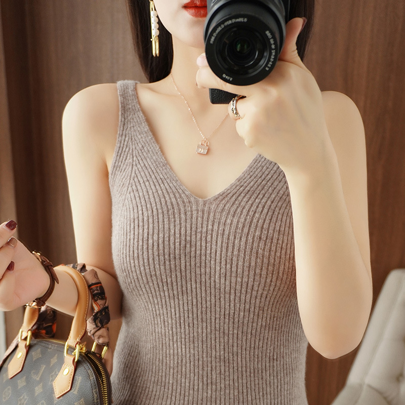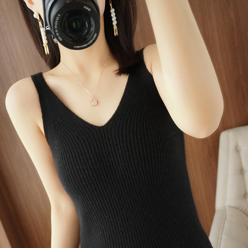 봄과 여름 니트 캐미솔 여성용 한국식 이너 세트 브이넥 흑백 슬림핏 민소매 베이스 탑 씬스토어 가기