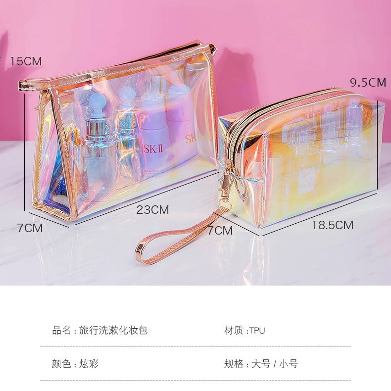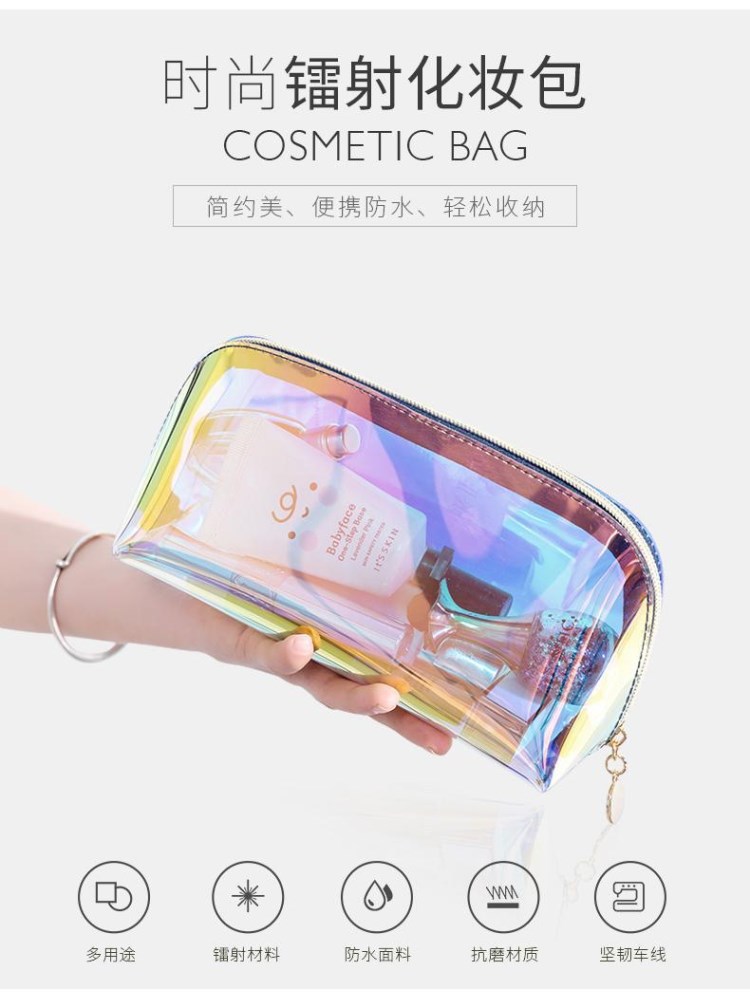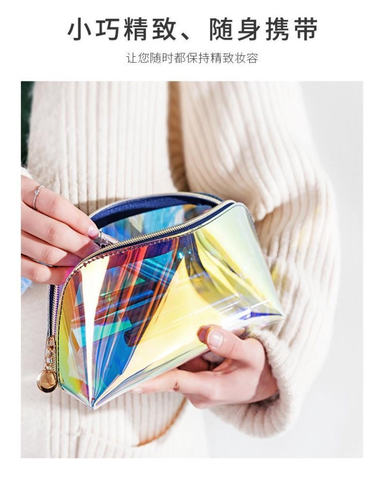 레이저 화장품 가방, 화려하고 투명한 립스틱 수납 가방, 고급스럽고 대용량, 휴대용 방수 세면도구 가방, 여성용 화려한 색상스토어 가기