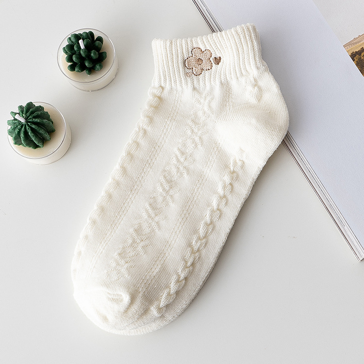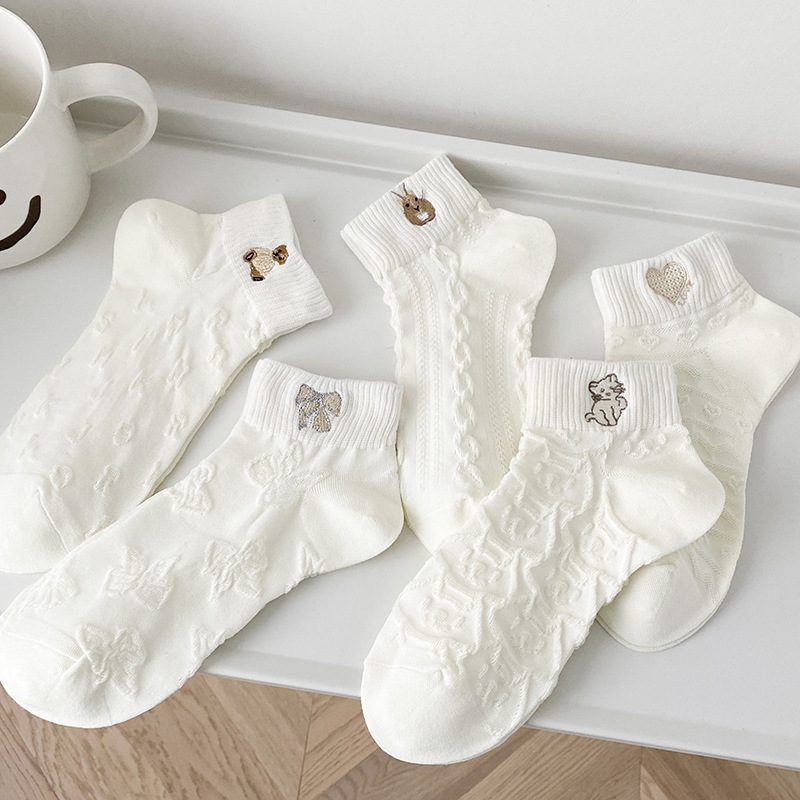 22 봄과 여름 새로운 단색 자수 곰 사랑 양말 여자 보트 양말 흰색 높은 힘줄 여자 양말 면화 양말 도매스토어 가기