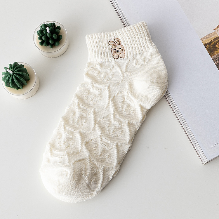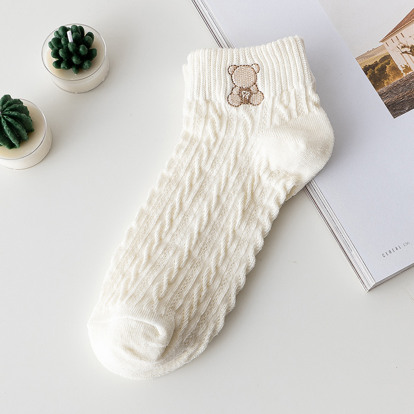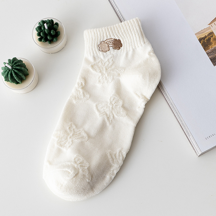 22 봄과 여름 새로운 단색 자수 곰 사랑 양말 여자 보트 양말 흰색 높은 힘줄 여자 양말 면화 양말 도매