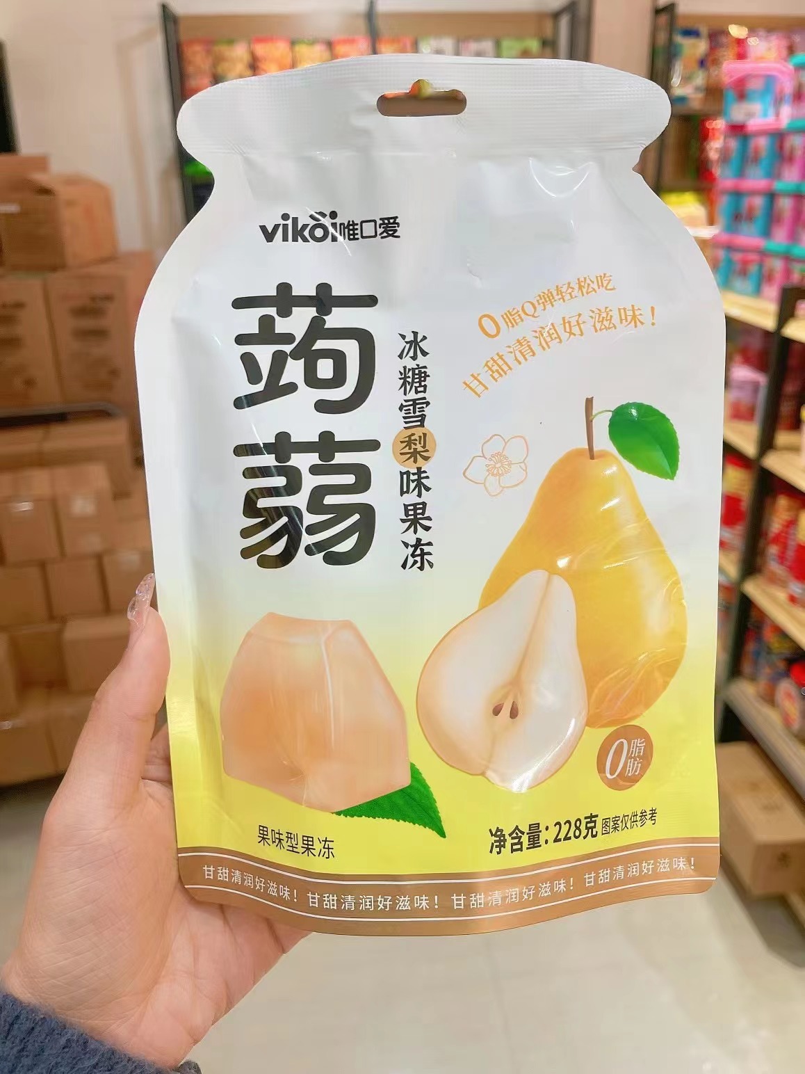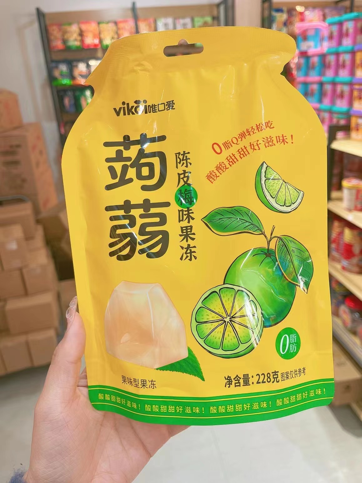 신제품 Weikou 러브 크리스탈 설탕 시드니 풍미 곤약 젤리 228g 순 레드 스낵 식품 첸 피메이 풍미 간식