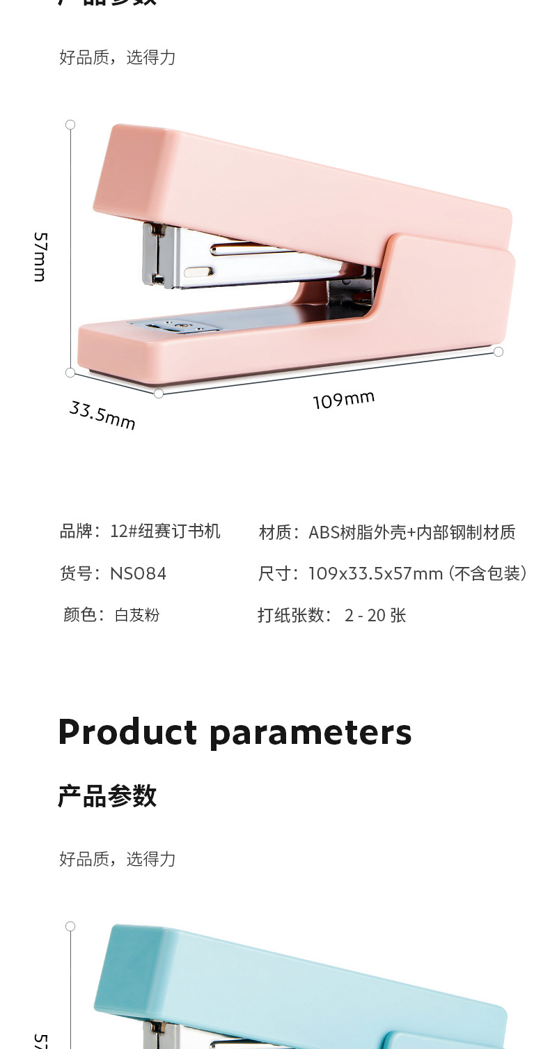 Delinius NS084 스테이플러 마카롱 컬러 오피스 홈 노동 절약 스테이플러
