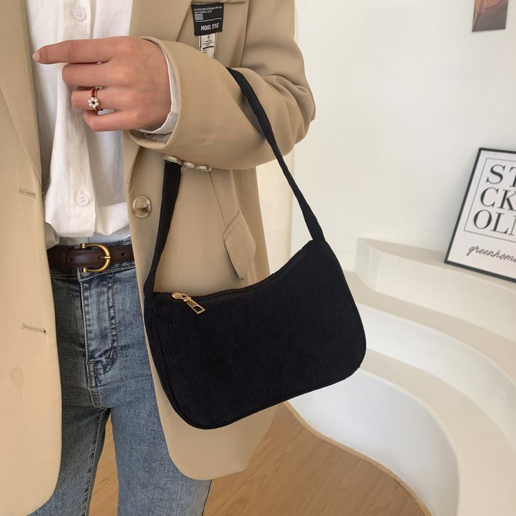 2024 가을, 겨울 새로운 휴대용 작은 사각형 가방 플러시 한 어깨 패션 레트로 코듀로이 겨드랑이 바게트 가방 핸드백스토어 가기