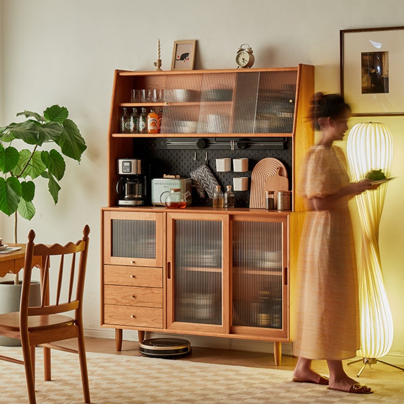 부엌과 거실을위한 슬라이딩 도어가있는 북유럽 솔리드 우드 사이드 보드 일본 체리 로그 오크 사이드 보드스토어 가기