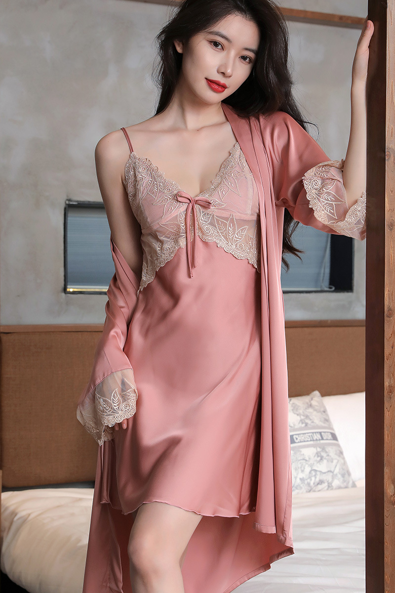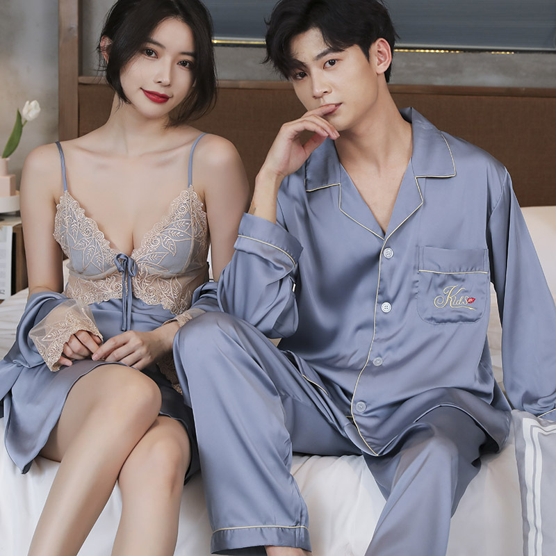 커플 잠옷 여자의 결혼식 빨간 봄과 가을 얼음 실크 슬링 아침 가운 섹시한 실크 투피스 세트 남자의 잠옷