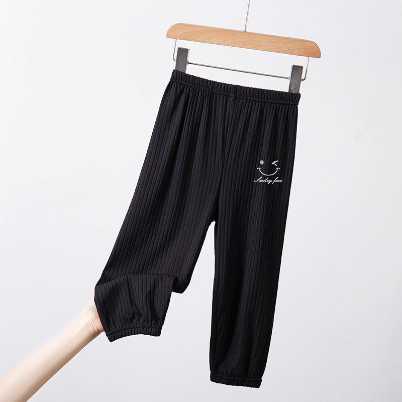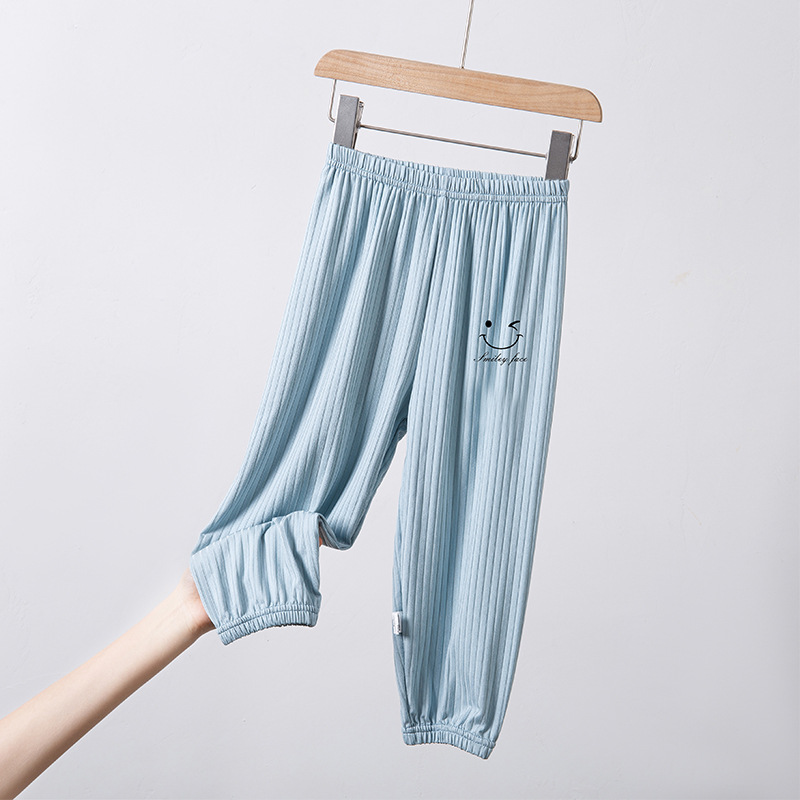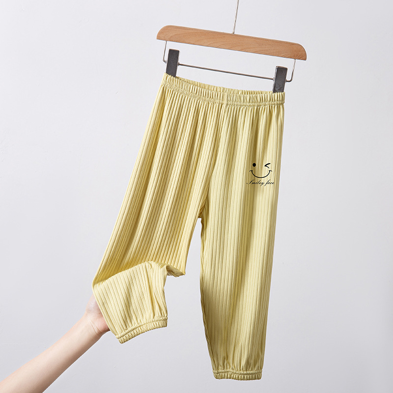 2023 여름 새 어린이 일반 아이스 실크 피트 흔들리는 바지 가정용 어린이 스마일 프린트 베젤 바지