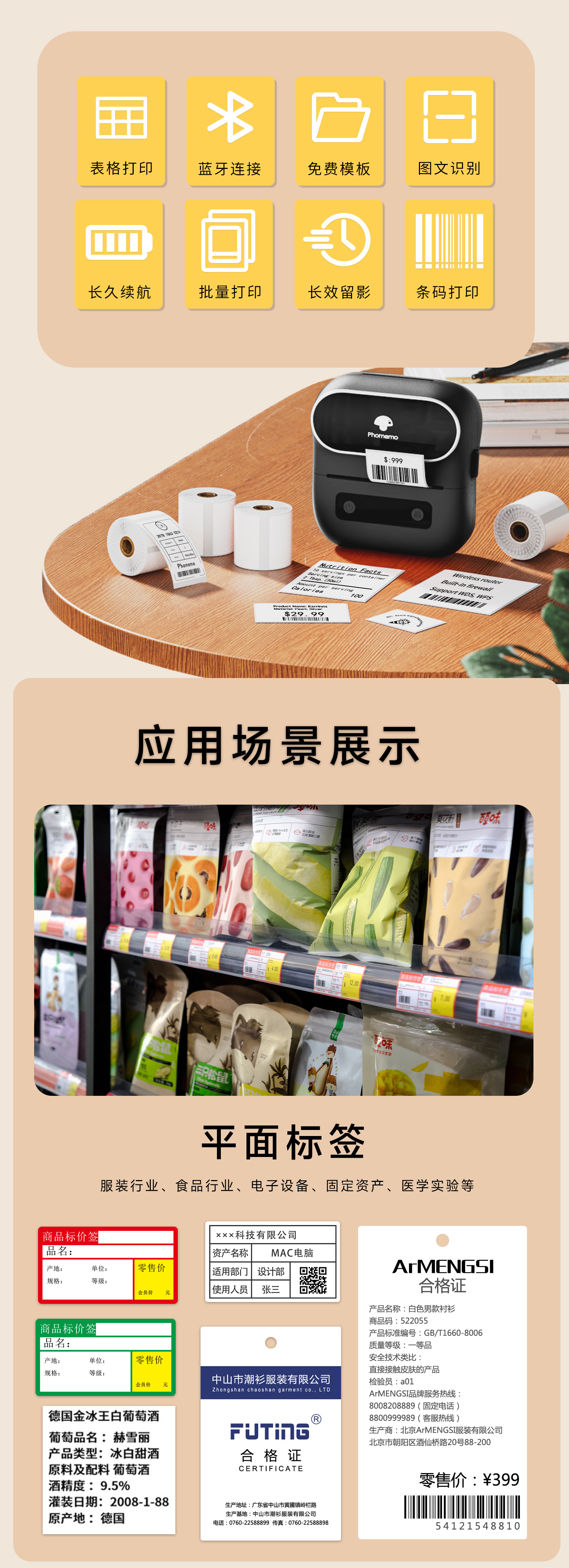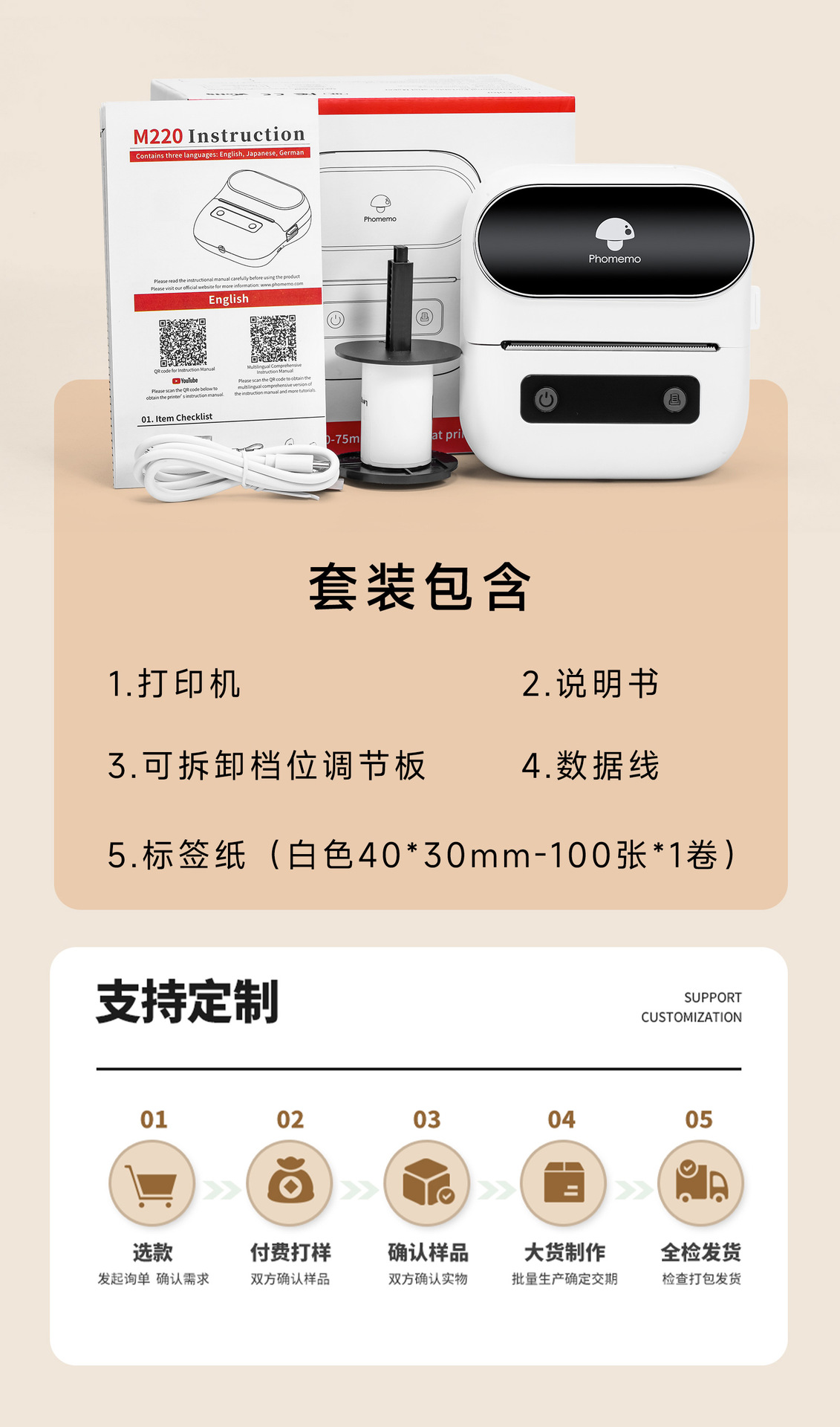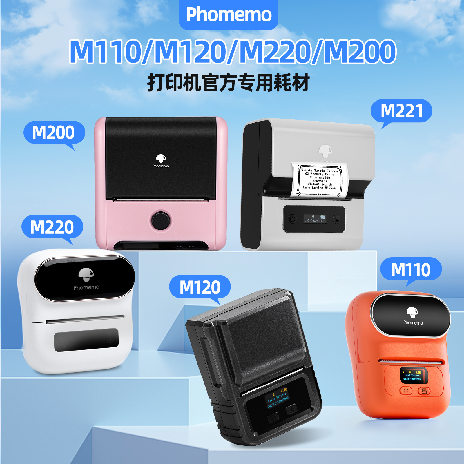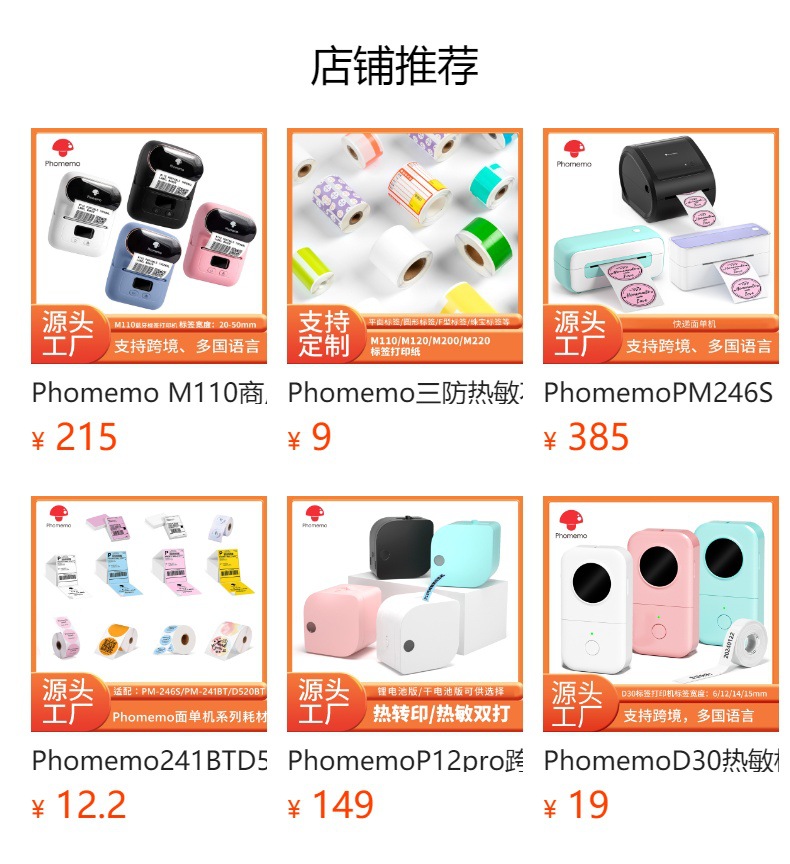 PhomemoM220 상업용 라벨 프린터 미니 휴대용 열전 사 프린터 의류 가격 라벨 기계스토어 가기