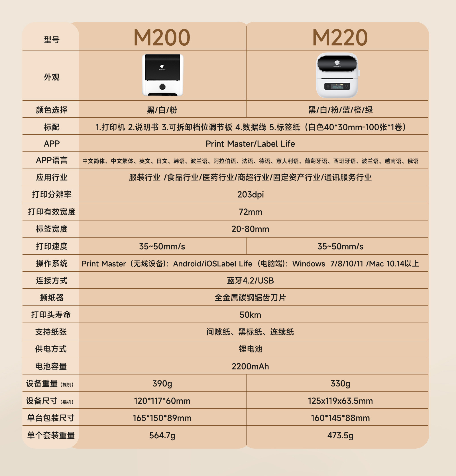 PhomemoM220 상업용 라벨 프린터 미니 휴대용 열전 사 프린터 의류 가격 라벨 기계