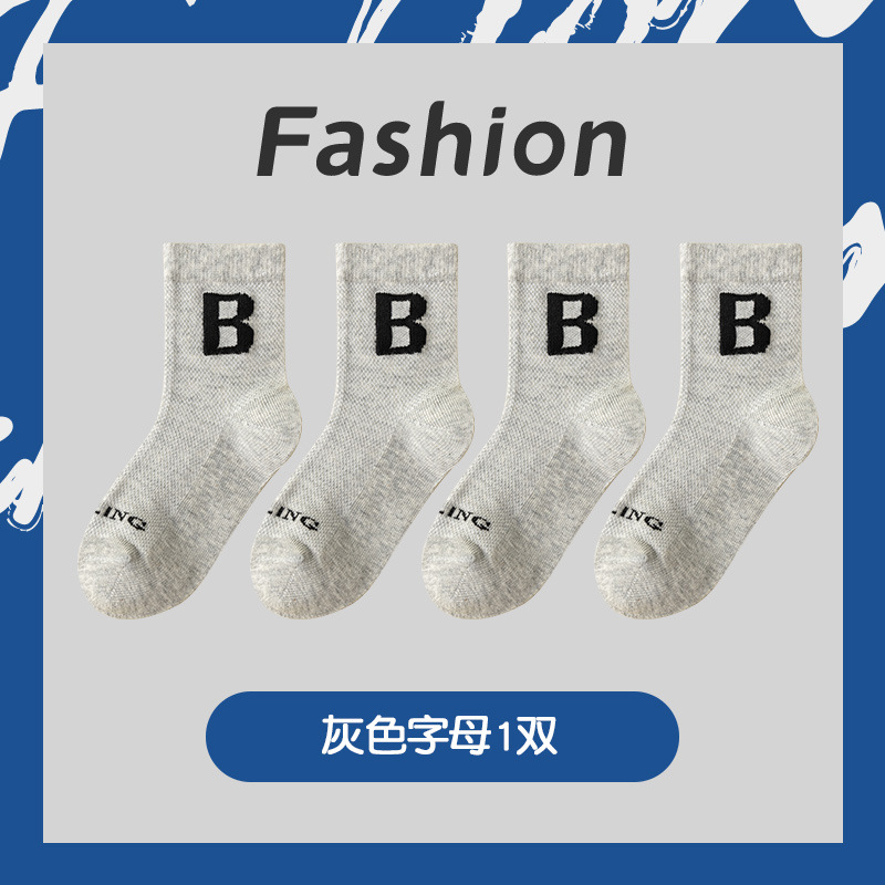 누비 엘프 어린이 양말 여름 얇은 메쉬 스포츠 양말 흰색 남아 여아 중간 길이 양말 문자 프린트